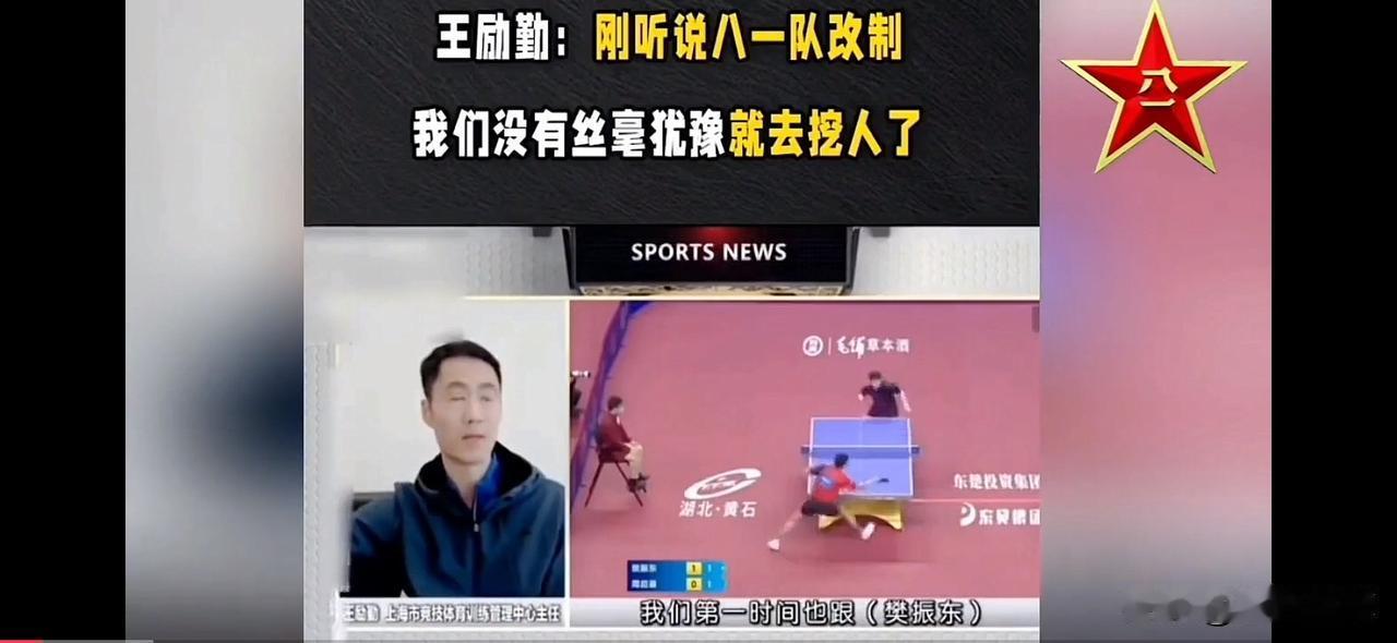 王励勤这个举动:真是小胖贵人啊! 王励勤说,我当天听到八一队解散的消息,当晚我就决定联系樊振东,邀请他加入上海队。 王励勤的这个决定,影响了很多后来的乒坛历史进程,如果小胖去了别的省队,如果别的省队,没有王励勤这样的人支持他,很难想象小胖会怎样,也许会有很大成就,但不一定会有现在这么大的成就,王励勤对小胖来说,确实是个“贵人” 各位觉得呢?