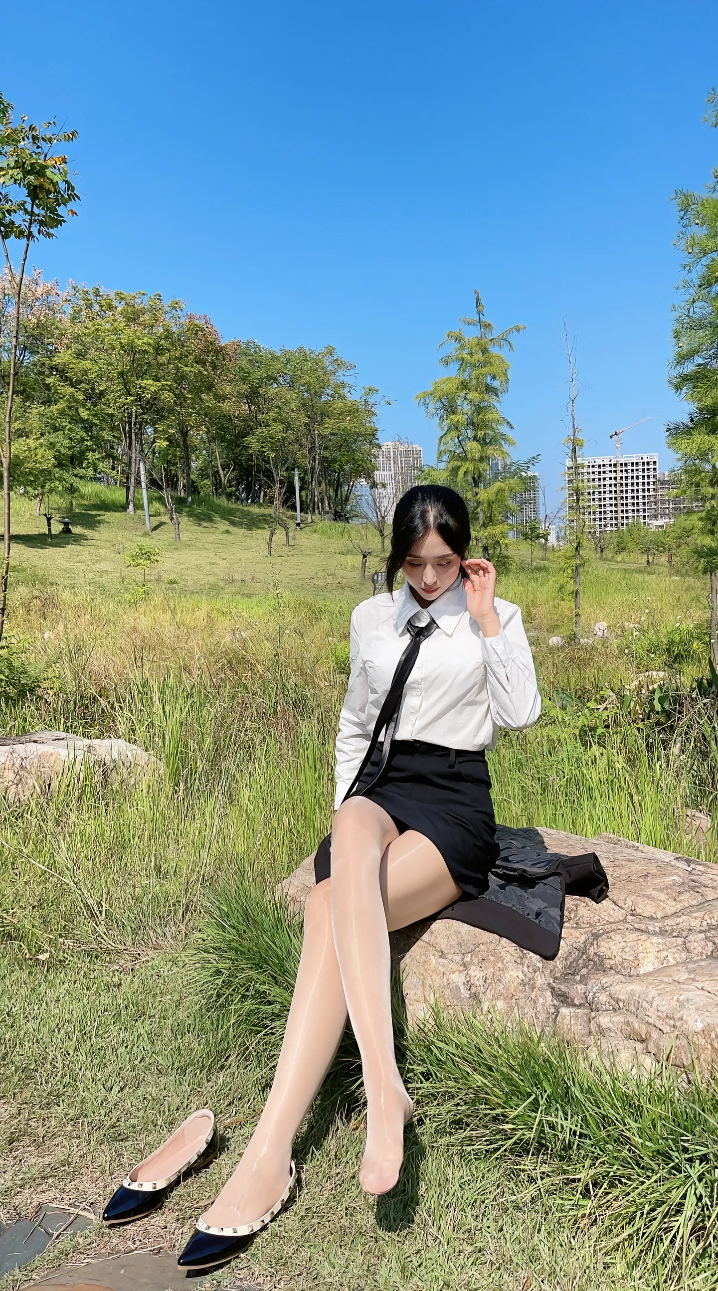白衬衫黑短裙玩转出其不意的甜酷感!马油肉丝袜自带高清磨皮滤镜,细腻光感裹着腿型超吸睛,领带歪系解锁慵懒拽感~ 草地蓝天的清新背景撞碎沉闷,脱鞋踩草的小动作又野又媚,职场混搭甜酷风,回头率直接炸街✨高清美女 美女丝袜高跟鞋 高跟鞋