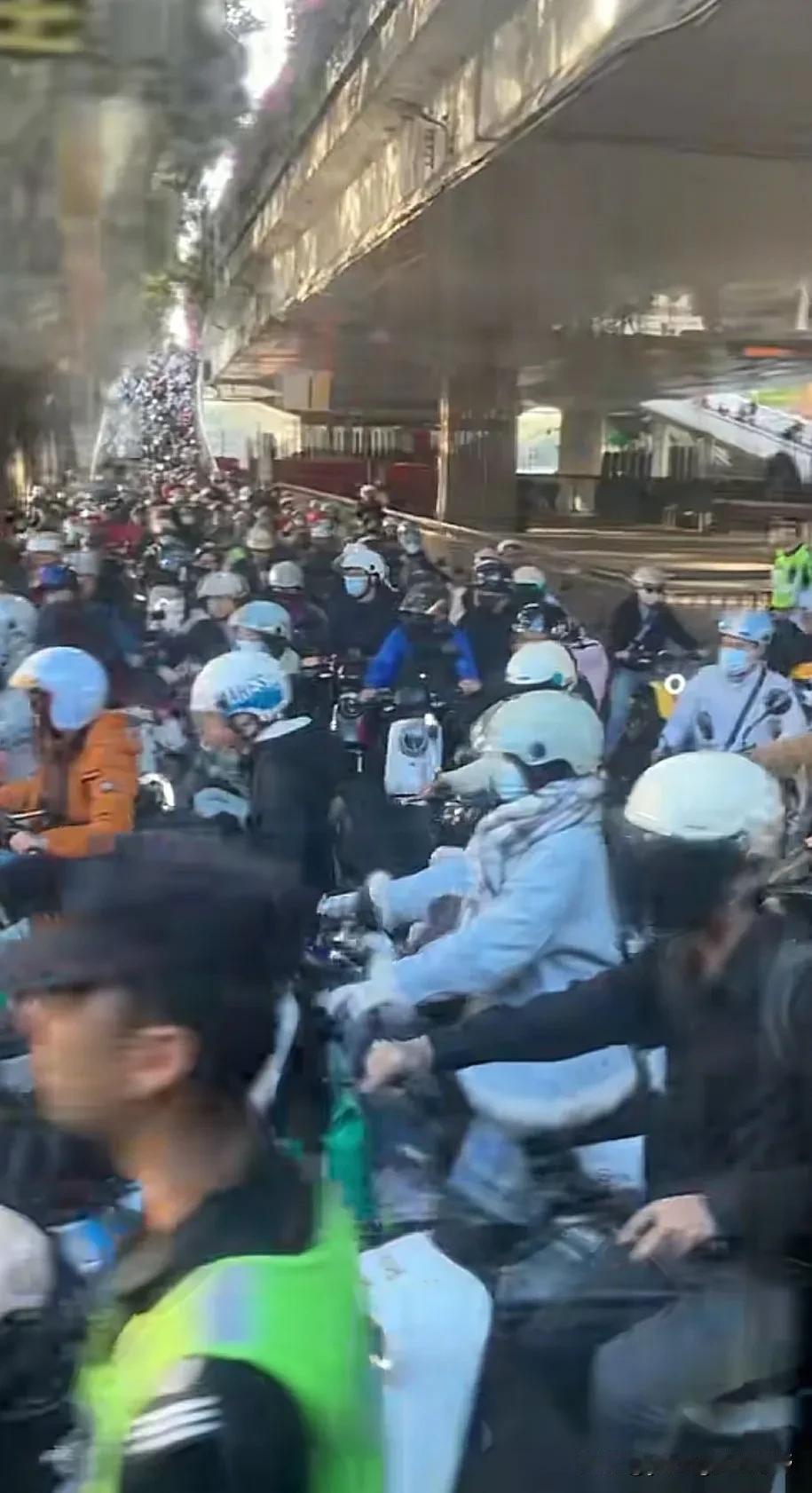 广州变为电鸡之城后,又开始面临塞电鸡的困境。有广州市民早上乘坐公交出行,途径某个立交桥出口处,被这浩浩荡荡的电鸡大军给震撼到了。从桥上下来的电鸡少说都有上千辆了,与主干道上的电鸡在此处汇为一体,缓慢的向前移动着。
