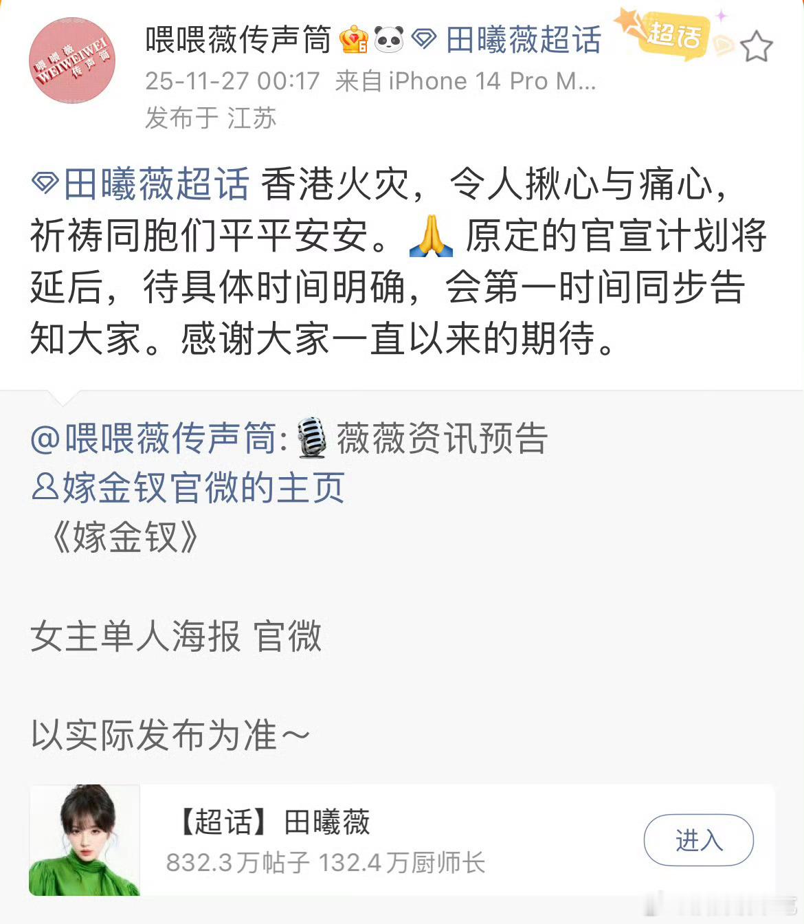 杨幂prada官宣以及田曦薇新剧官宣都延后了