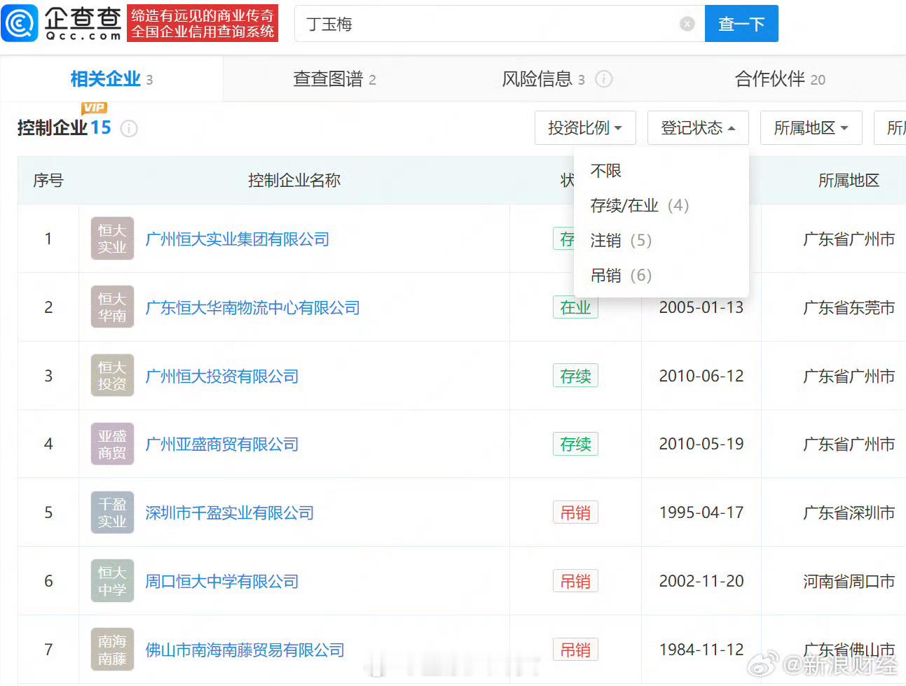 许家印前妻丁玉梅更多资产曝光:加拿大、新加坡两家银行各5亿,瑞士银行4亿元,通过直接或间接持股拥有15家企业的实际控制权,其中11家已被吊销或注销许家印前妻丁玉梅更多资产曝光 许家印前妻实控11家企业已注吊销