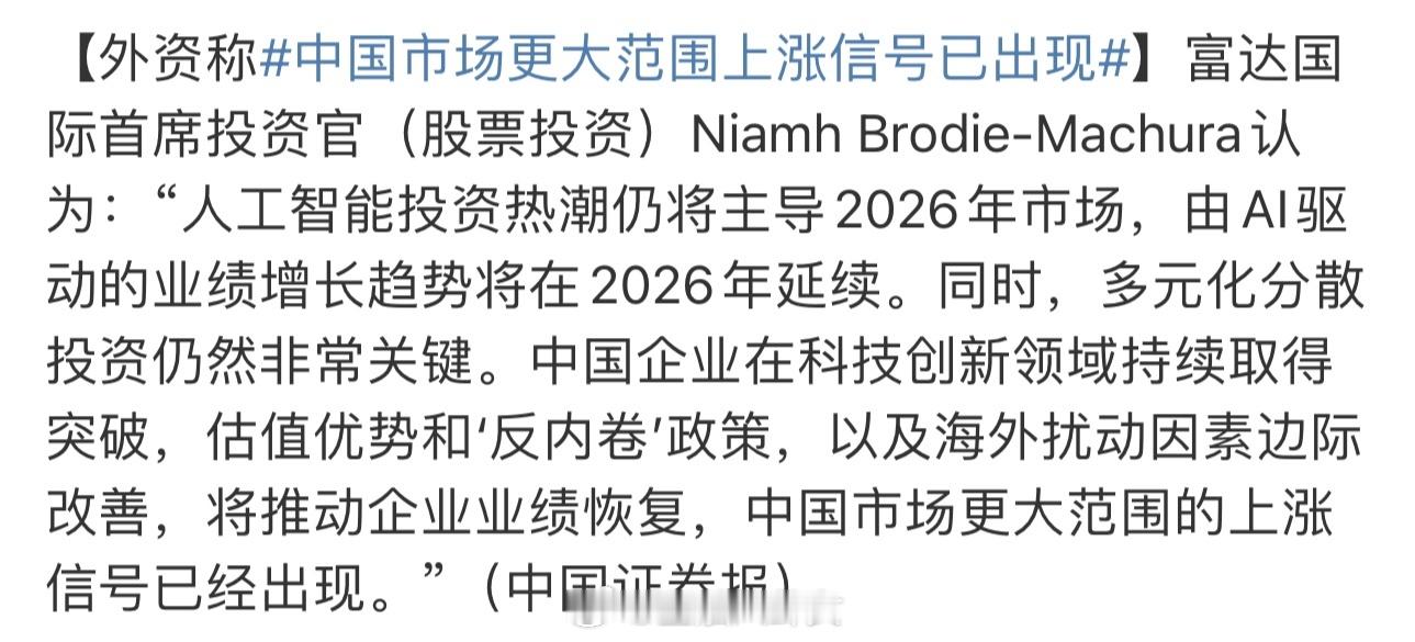 富达国际首席投资官(股票投资)称:中国市场更大范围上涨信号已出现
