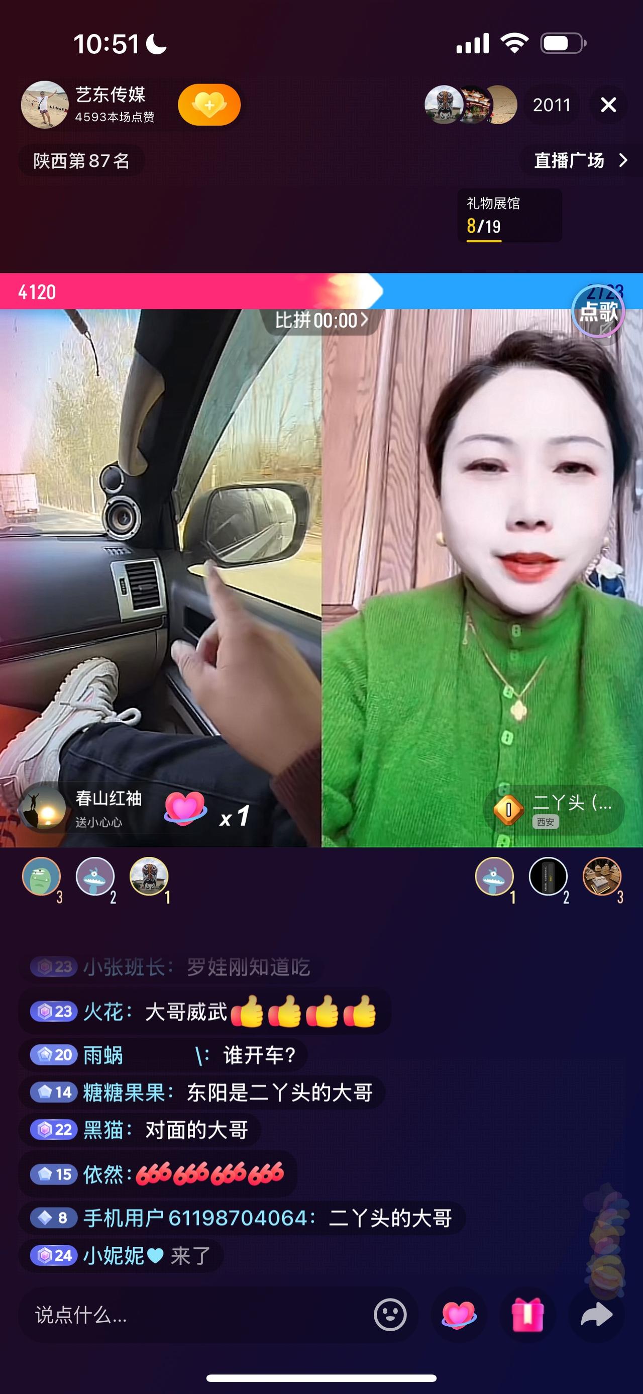 上午,网红柳艺东与徒弟海带打了五分钟的小PK,直播间二千多人,柳艺东打了5181票,过一会,柳艺东和徒弟二丫头打PK,柳艺东打了4181票,在打PK时,直播间有人说柳艺东凉了,柳艺东说,凉不凉,用票说话,还是有大哥上票支持他,柳艺东口气还是自信满满,有人不喜欢柳艺东,黑柳艺东,但还有不少人喜欢柳艺东,喜欢柳艺东的个性和说话风格,人各有志。