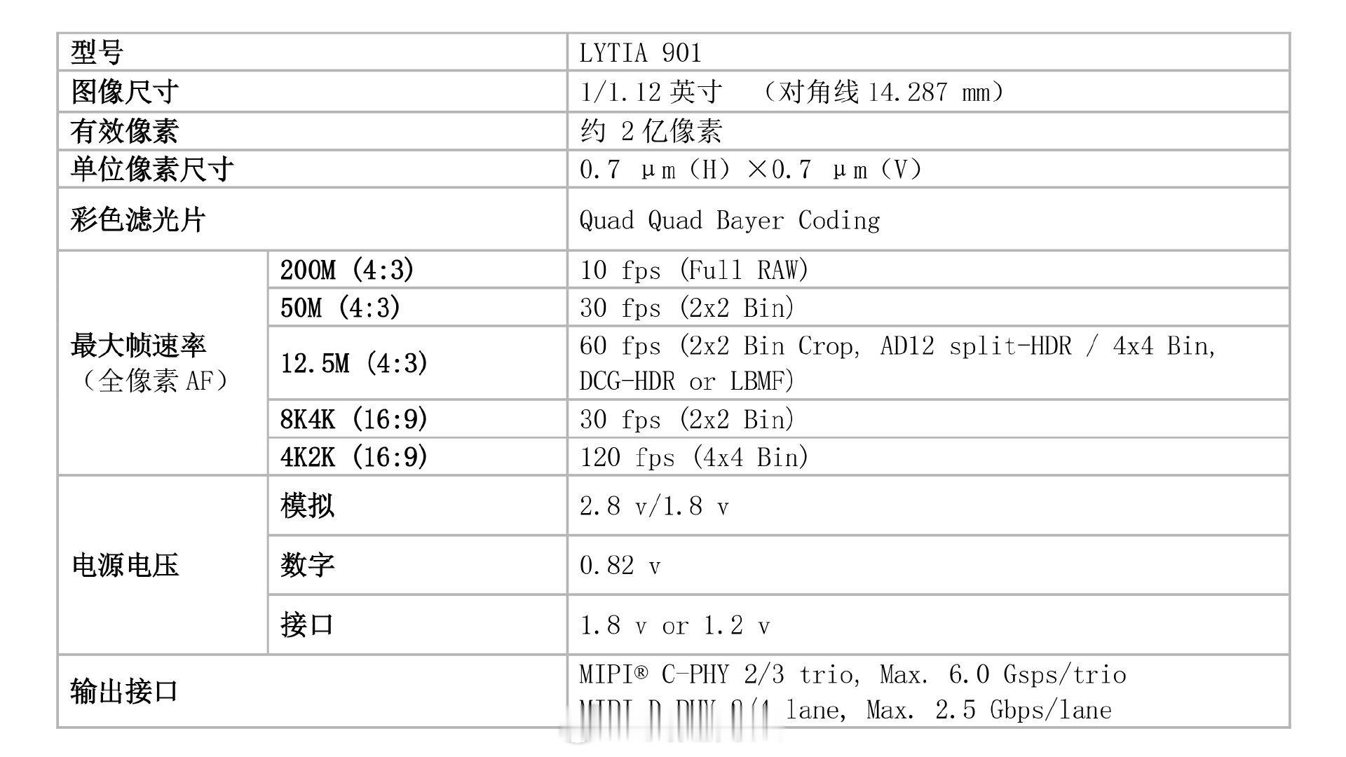 LYTIA 901,1/1.12底,2亿有效像素,今日发布! 结合四合一像素编码技术(QQBC),高分辨率与高感光能力兼备 。搭载AI学习型阵列重排技术,单镜头实现4倍变焦下清晰成像 。Hybrid Frame-HDR(HF-HDR)超100dB动态范围,所见更近人眼真实感知 。喻见未来一见倾芯
