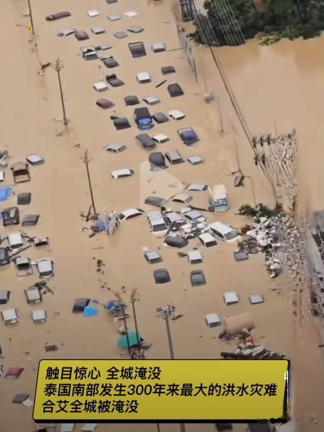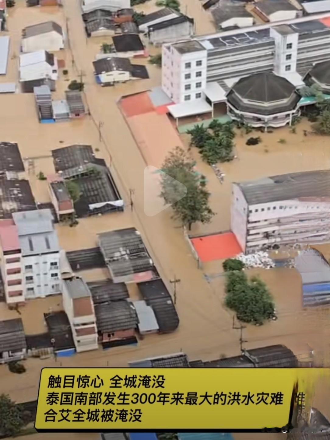 触目惊心泰国南部发生300年来最大的洪水灾难,合艾全城被淹没,简直不敢相信自己的眼睛。泰国遭遇300年来严重洪灾 此次泰国300年来最严重的洪灾集中在南部宋卡府等9个府,由极端暴雨引发,截至11月25日已致41人死亡、超268万人受影响。 1.灾情严峻程度:11月21日合艾市单日降雨量达335毫米,三日累计降雨量630毫米,打破300年纪录。当地洪水深度最高达2.5米,城市主干道被淹、车辆漂浮,合艾医院断水断电,30名新生儿被困且父母难以前来探望。作为橡胶贸易中心,此地瘫痪预计会让泰国橡胶减产约1万吨,当地原定新年倒计时等活动取消,旅游业损失惨重; 2.多方紧急救援:泰国政府宣布宋卡府进入紧急状态,派出“扎克里”号轻型航母参与救灾,该航母搭载直升机、医疗团队和移动厨房,还能充当“浮动医院”。同时安装了数十台水泵引流洪水。马来西亚派出救援队协助疏散游客,中国驻泰使馆也发布安全提醒并开通24小时领事保护热线。(图源网络)