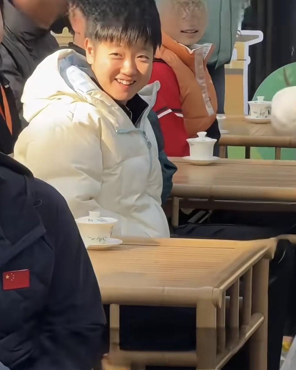 看得出来孙颖莎真高兴 虽然天气很冷 但是孙颖莎笑得都合不拢嘴了。难得能看四川功夫茶表演,感觉很新鲜,平时训练太枯燥了,难得放松一下灭火器感受四川当地的文化特色。 孙颖莎平时也爱喝茶,这个功夫茶表演,孙颖莎一看就很喜欢,手都冷得揣兜里了,还目不转睛盯着漂亮小姐姐看,感觉像小孩子看表演一样,太可爱了。 图片源于网络