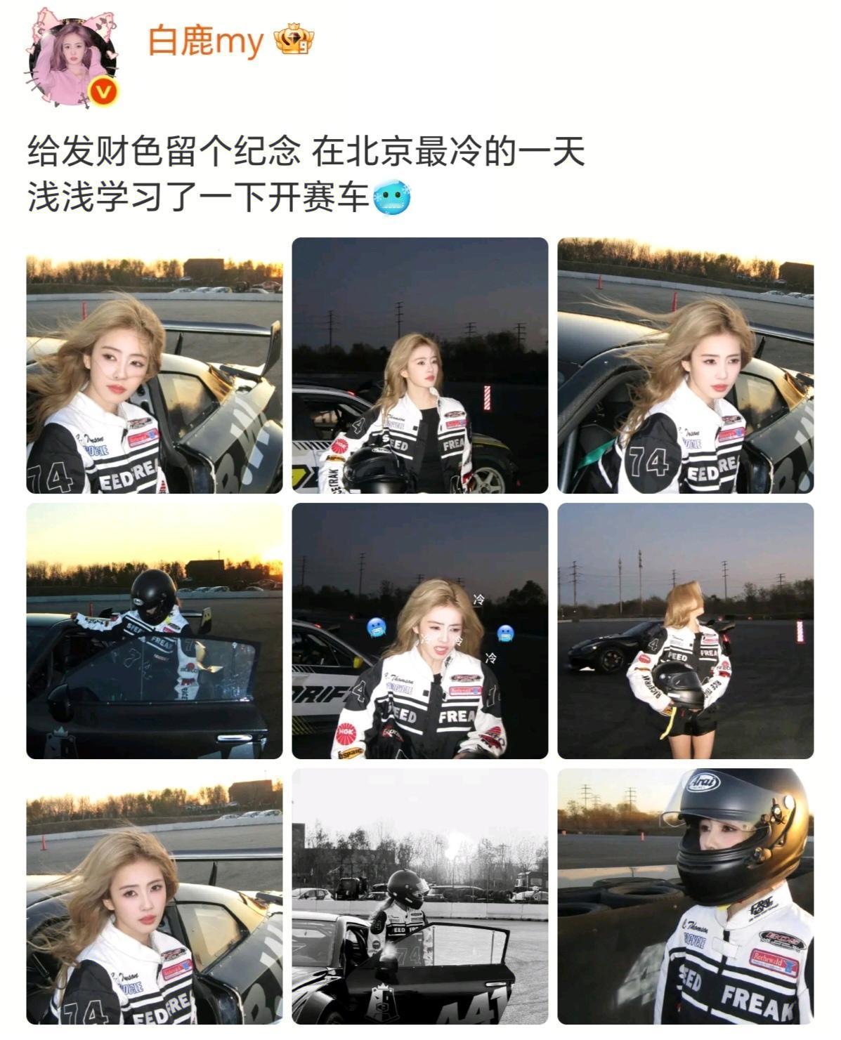 白鹿真会挑日子! 白鹿在北京街头的一幕! 傻姑娘白鹿真会挑日子!北京最冷的一天她出来得瑟了,染着一头发财色招摇过市,生怕别人认不出她是大明星![灵光一闪] 上一秒还在耍酷,结果下一秒就被冻得瑟瑟发抖,咱就说明星的钱也不好赚吧! 趁着机会,白鹿又浅浅学了一下赛车,在赛车旁边留下许多张照片,发到了社交平台,白粉们你们看到偶像心疼不!白鹿造型图片 白鹿服装