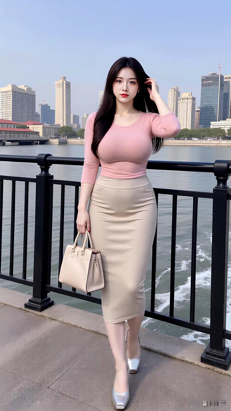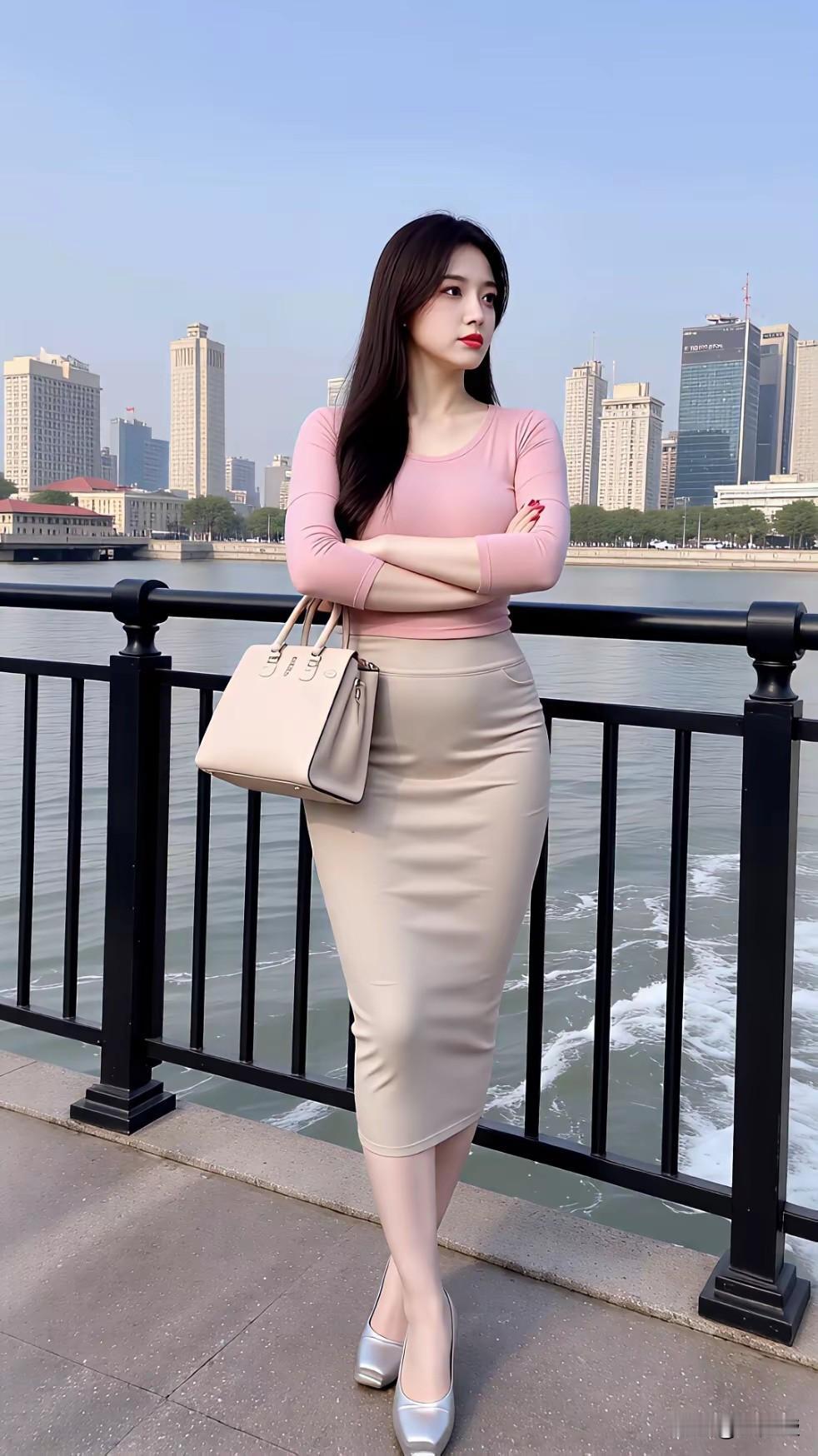 都市风穿搭指南:粉色上衣+米色半身裙,优雅气质满分!