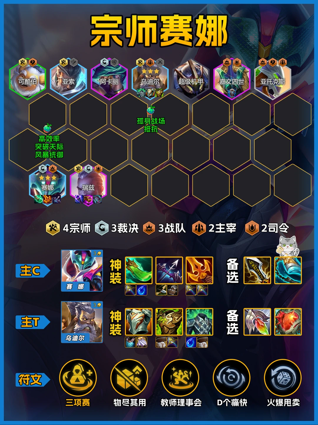 更新后T0阵容,宗师赛娜一个技能融化后排!