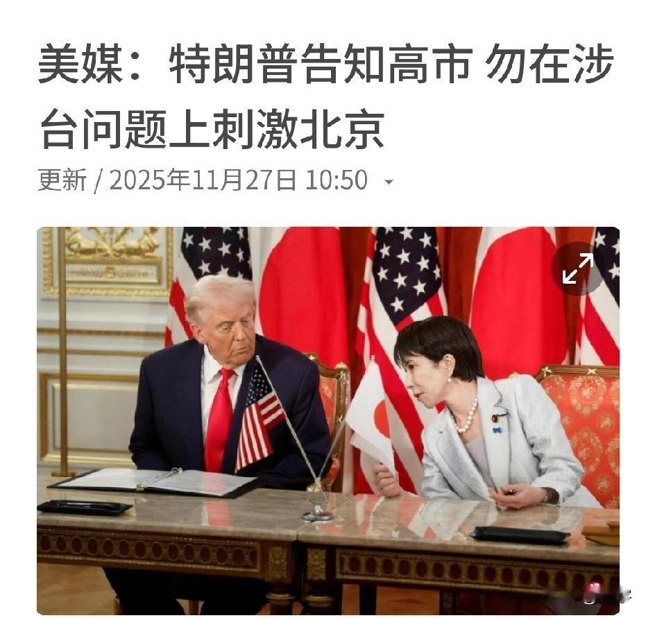 果然不出所料,高市早苗野心浮出水面! 早在高市早苗11月7日抛出其涉台错误言论,众多网友纷纷猜测这是刚刚与特朗普会晤后不久的高市早苗,得到了特朗普的授意,要跳出来为美国充当亚洲“乌克兰”之际,咱们的官媒就迅速出来点出了高市早苗的阴谋并非如众多网友猜测的那样,如今,从美国媒体曝光特朗普在与高市早苗的通话中告戒高市早苗,勿在涉台问题上刺激北京一事可知,特朗普并未向高市早苗作出相关授意,那么高市早苗的野心就浮出水面了,咱们官媒揭露高市早苗的野心是对的。高市早苗先斩后奏,未经美国允许主动发出武力涉台的挑衅言论,就是在妄想将东亚局势升级到危险程度,让日本可以借机扩充军事力量,升级武器装备,逐渐复活日本军国主义!幸运的是,我们不但没有让高市早苗的野心得逞,还成功复制了俄罗斯解决乌克兰问题,放下乌克兰和欧洲,直接与美国沟通的方式,让美国警告日本,而高市早苗在特朗普的通话中却只能无言应对,点头称是!特朗普对日本的行动同样也验证了众多网友对日美美系的预测,那就是曾经被日本在珍珠港事件中狠咬一口的美国,只要还有一丝理智存在,都不会让日本再次拥有撕咬美国的军事实力!这一次,咱们借力打力,让特朗普出面一下子将嚣张的高市早苗打沉默了,干得漂亮!