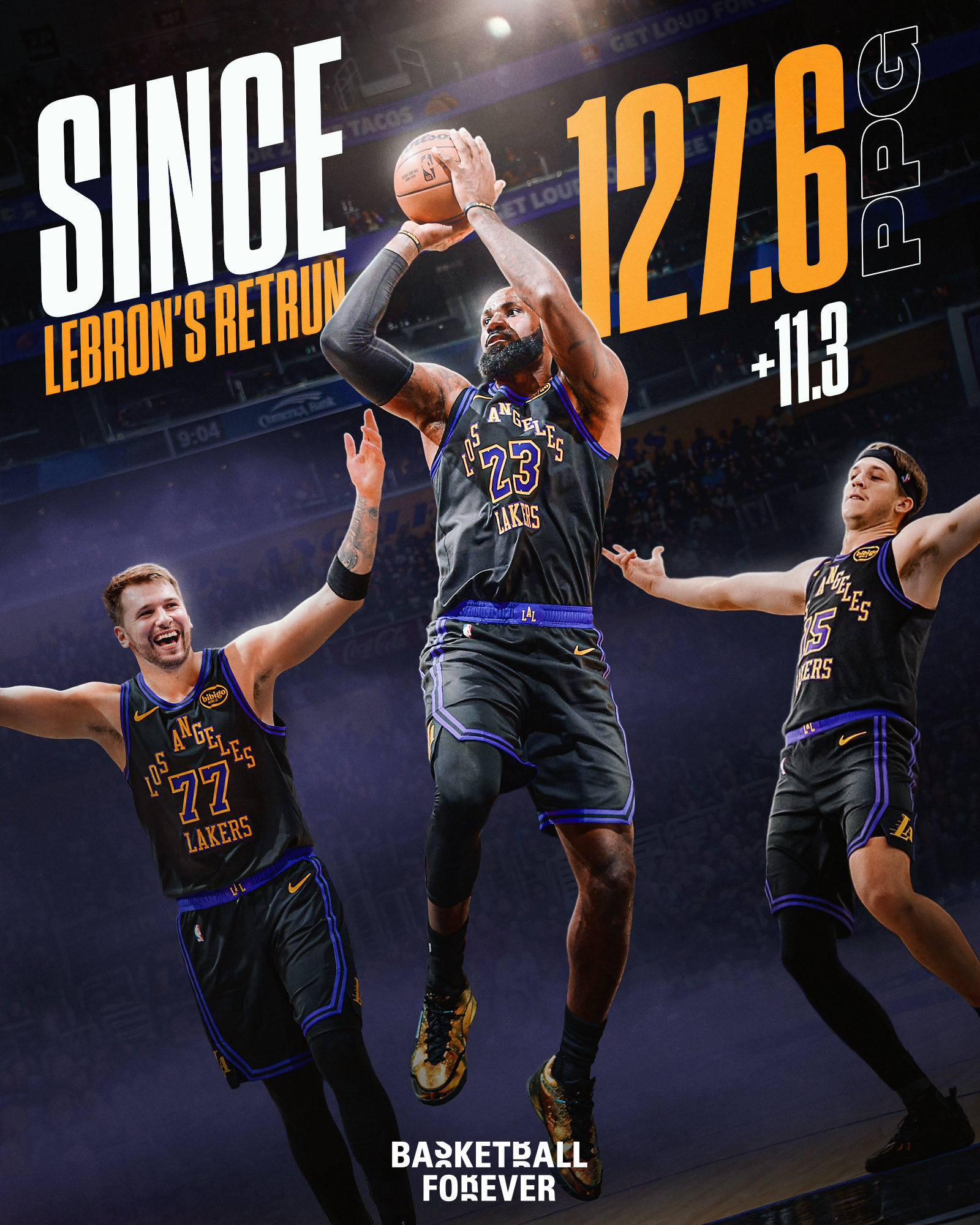 自从詹姆斯回归以来,湖人的场均得分从 116.3 分提高到 127.6 分(+11.3),联盟第一🔥NBANBA赢球密码