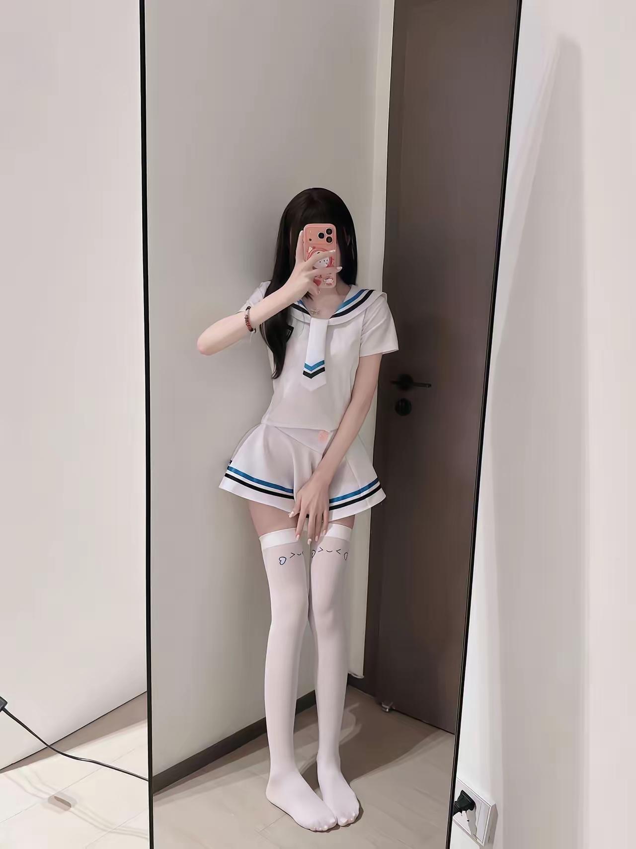 可爱水手服少女,跪姿自拍,萌趣满满!💕📸
