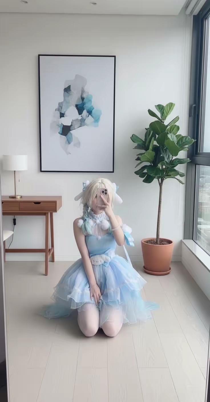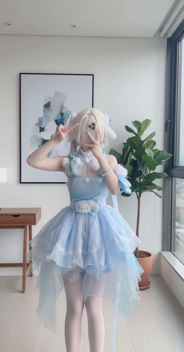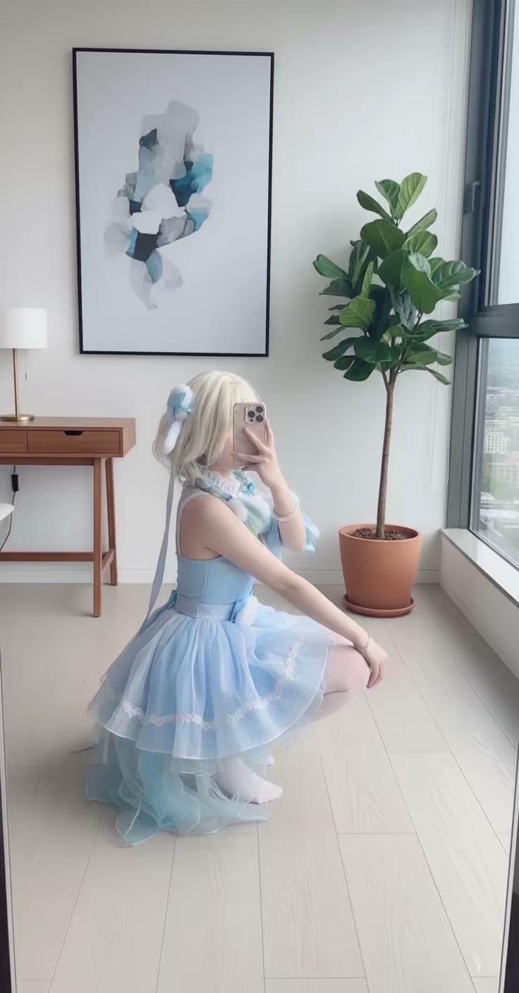 梦幻蓝裙少女,镜前自拍照📸✨白丝[话题]