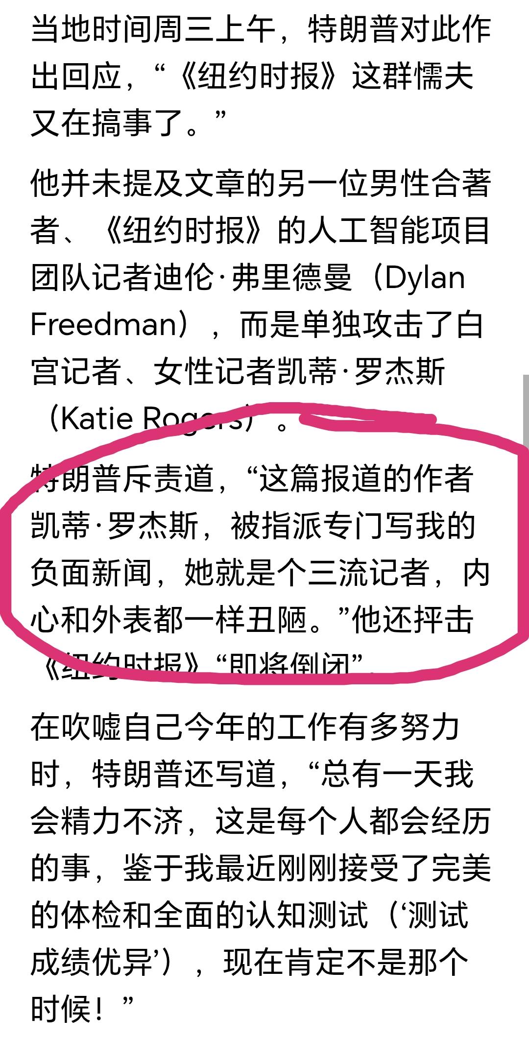 美国娱乐业发达的原因终于找到了。这不,税宗身体力行,把政治玩成全民娱乐,天天都在制造花边新闻然后上头条。[我想静静] 这次是和美国《新乡时报》记者对喷。 《新乡时报》记者说税宗老了,不行了,税宗快变睡宗了。 这能忍?那可是瞌睡乔啊。 税宗最看不起的人最讨厌的人。 税宗第一时间就回怼《新乡时报》马上就要倒闭了,女记者是丑八怪。[我想静静][我想静静][我想静静] 税宗放过了同一篇报道的男性记者,只对女记者开火。 难道他有厌女症?[偷笑] 点右上角关注我,我们一起去看这个魔幻的世界