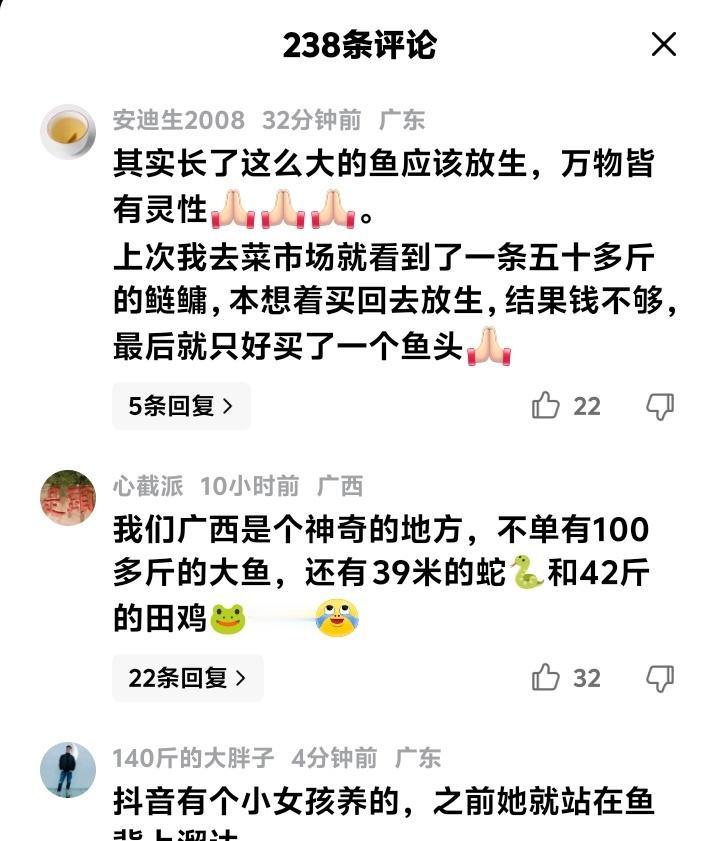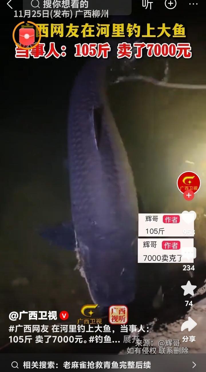 柳州融江河畔惊现105斤“水中国宝”,钓友奋战一小时擒获巨物,7000元成交引爆全网生态保护大讨论! 初冬的柳州融江河面泛着粼粼波光,一位钓友的鱼竿突然弯成惊心动魄的弧度。经过整整一小时的角力,一条鳞片如铜钱般硕大的青鱼终于浮出水面。当电子秤显示105斤的瞬间,围观人群爆发出阵阵惊呼,这条相当于成年人体重的巨鱼在夜色中闪烁着神秘光泽。 这条见证河流沧桑的“活化石”随后以7000元价格易主,却在网络掀起远超交易金额的波澜。有资深钓友捶胸顿足,指出同规格青鱼在收藏市场可达数万元,特别是鱼喉处的“青鱼石”可制作名贵配饰。更多人则聚焦在生态伦理层面,追问这条可能生长二十载的生命该何去何从。 翻涌的评论区内,有人分享着广西这片神奇土地上的传奇——39米的森蚺与42斤的田蛙,也有人回忆故乡水库里渐行渐远的百斤巨物。这些叙述拼凑出人与自然关系变迁的缩影,在钢筋水泥蔓延的今天,每一条巨型生物的现世都成了映照生态变迁的镜子。 买鱼人的身份引发各种猜测。或许是追求祥瑞的商贾,或是准备制作标本的收藏家,也可能是心怀善念的放生者。那条游进转账记录的青鱼,已然成为映射世间百态的载体,承载着不同人群对自然生命的理解与期待。 专业钓手分析称,能长到百斤以上的青鱼至少需要度过15个春秋,期间要躲过无数次捕捞与污染危机。这条穿越时光的精灵,其存在本身就是河流生态系统健康的证明,它的意外现身让洛崖这段静谧河道瞬间成为全网瞩目的生态坐标。 在“该放生”与“合理获利”的争论中,折射出当代人对自然资源利用的深刻矛盾。传统渔猎文化与现代生态保护的碰撞,让每次巨物出水都变成全民参与的生态课堂。那些为巨鱼命运揪心的声音,何尝不是对人与自然和谐共处的深切呼唤? 这条游进热搜的青鱼正在唤醒集体记忆。许多网友怀念起童年河中随处可见的大鱼,感叹如今连钓获斤级鱼种都成奢望。这种集体失落感转化为对百斤巨物的格外珍视,本质上是对逝去自然图景的无声追悼。 当我们在屏幕前为这条青鱼命运沉思时,其实是在审视人类与自然相处的智慧。或许下次邂逅类似生命奇迹时,我们能有更成熟的应对方式——既尊重传统渔猎文化,也守护这些历经沧桑的水中国宝。 (来源:根据广西卫视、南国早报、辉哥分享及各大社交平台热议内容整理) 柳州爆料 柳州钓鱼