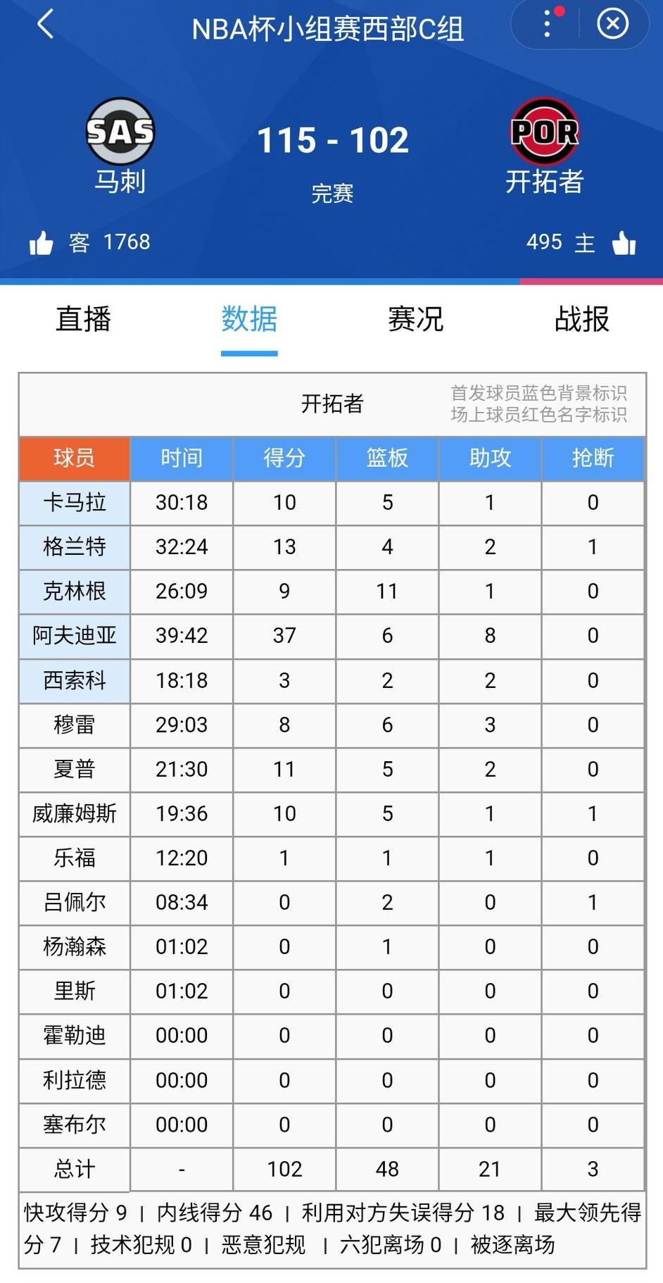 NBA杯小组赛,马刺115-102轻取开拓者,最后一分钟已成定局,杨瀚森终于上场,只取得1个篮板。 高龄落选秀乐福深得斯普利特欢心,上半场上场7分多钟,全部数据挂零,比杨瀚森这个16号新秀待遇怎么样?