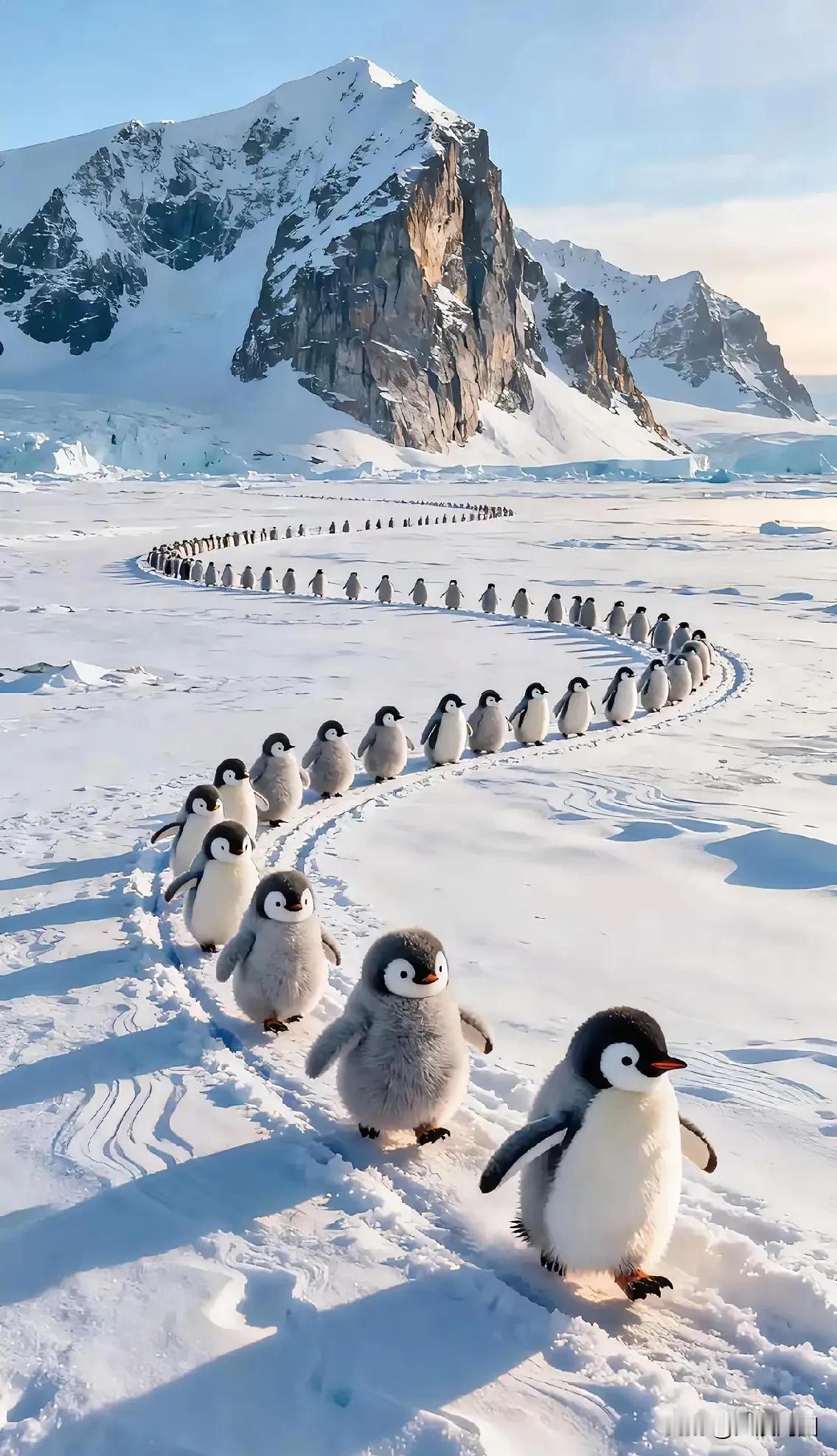南极雪地里,企鹅们开启了一场大游行,可爱爆棚!🐧🐧🐧企鹅企鹅冰雪大世界