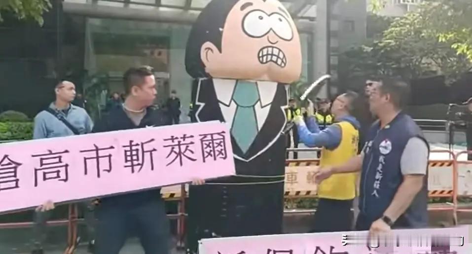 新党副秘书长游智彬太敢了!直接拎着大刀,对着赖赖的人偶“手起刀落”,嘴里还喊着“