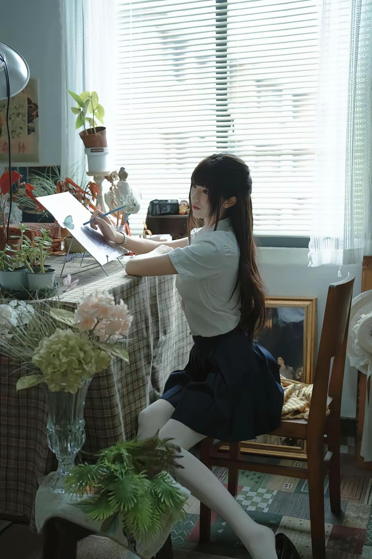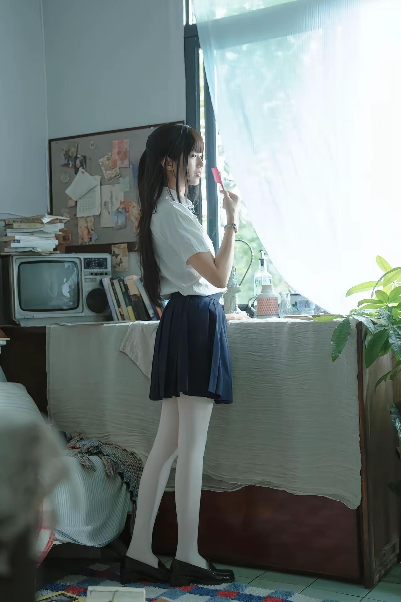 秋日暖阳下,少女与落叶共舞白丝[话题]