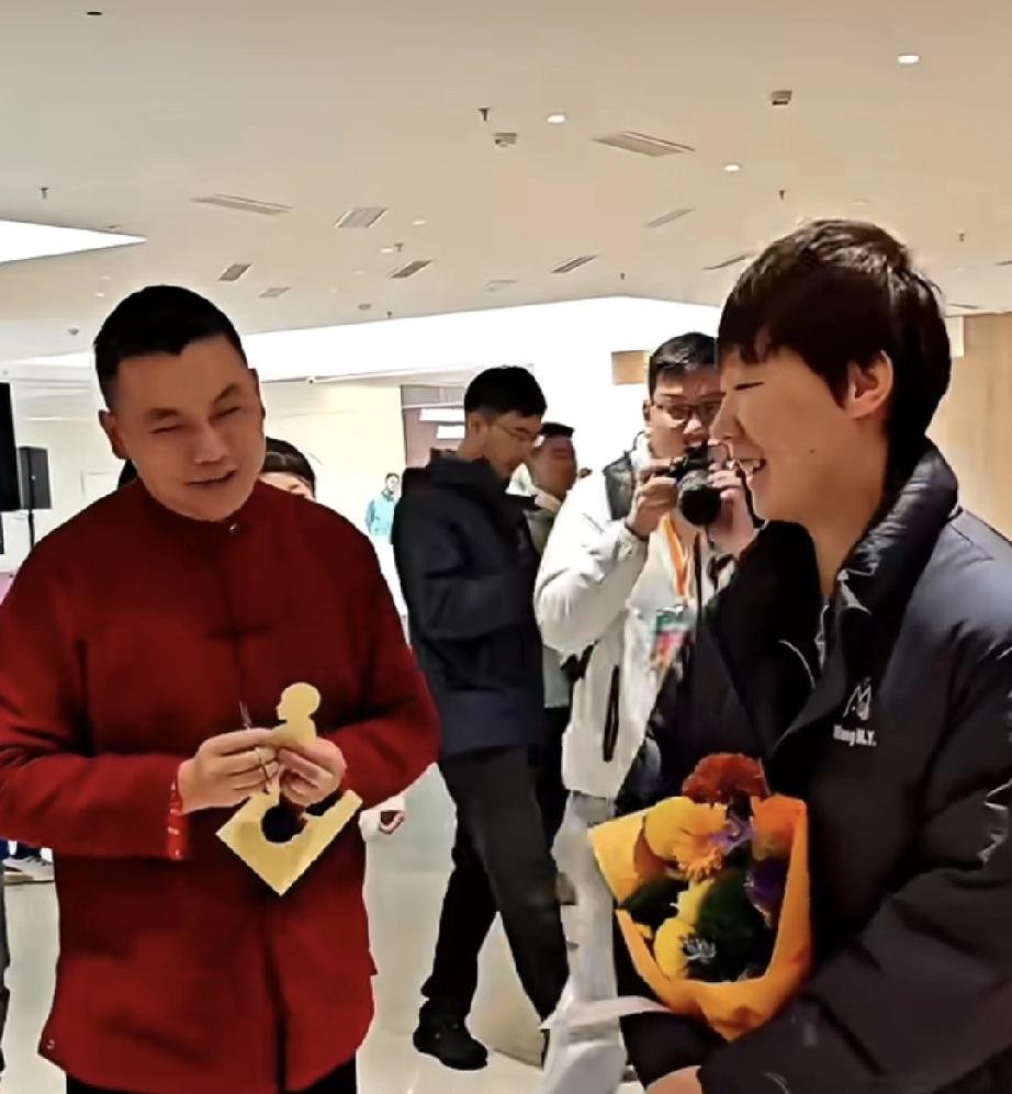 新科十五运女单卫冕冠军王曼昱今日率领林诗栋、徐瑛彬、薛飞、徐奕、陈熠等队友一同参加“国球进社区”活动。 现场体验剪纸师傅的快速侧颜剪纸,王曼昱作为模特奉献自己侧颜,全程憋笑特别害羞! 不过,师傅完成曼昱侧颜剪纸后,曼昱直接夸奖师傅剪的要比自己真实侧颜好看! 逗的师傅也连连点头,笑容满面! 现场气氛轻松愉悦!