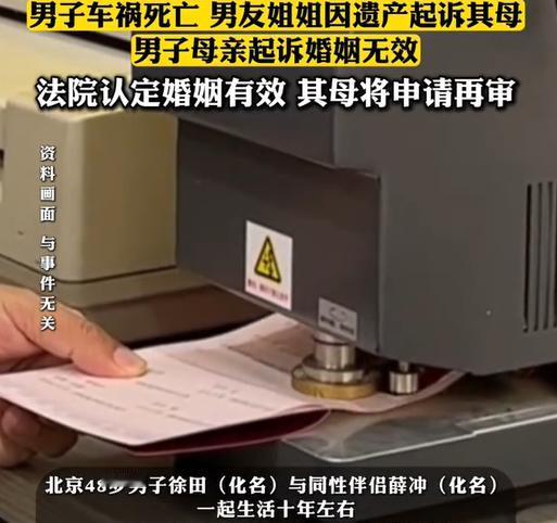 北京一48岁男子,与同性伴侣的姐姐“假结婚”。结果证刚领完,男子却不幸车祸身亡。母亲担心“儿媳”分遗产,急忙起诉婚姻无效,谁知法院二审判决让她彻底懵了——婚姻有效!目前,老太太不服,正准备申请再审。   “我结这个婚,就是为了多分50平米,完事儿赶紧离!”徐田怎么也没想到,当初干脆利落说出的这句话。会在他死后成为,“妻子”争夺他身后所有财产的的致命一击。   故事要从北京一个即将拆迁的村子说起,48岁的徐田与同性伴侣薛先生已共同生活十年,当感情稳定的他们,听到母亲所在的村子,传来拆迁消息时,并且户口内每人,均可分的50平米的安置房资格时,瞬间激动起来。   要知道,在北京50平米安置资格,再加上几十万的安家费,算下来是一笔接近两百万,如此一笔横财,突然砸到面前,让原本就拥有安置资格的徐田,再次想到了一个“聪明”的办法。   那就是和自己同性伴侣,在老家丧偶的姐姐薛女士假结婚,把“一个人”变成“一家人”,这样既不伤害自己与同性伴侣的感情,又可以多拿一份补偿。   于是在五万块“辛苦费”的支持下,2024年12月,两人在焦作领了那张红色的证书。期间没有婚礼,没有共同生活,只有微信聊天记录里,冷冰冰的交易条款。   然而,谁也没料到,意外总比惊喜先来一步。领证后不到两个月,一场突如其来的车祸,瞬间夺走了徐田的生命。所有的计划戛然而止,留下的是一地鸡毛。   眼见拆迁的利益还没完全落袋,一个更棘手的问题炸开了,因为在徐田离世的情况下,这个法律意义上的“妻子”,究竟有没有权利分他的遗产?   形势的急转直下,让徐田的母亲措手不及。 她眼睁睁看着这个素未谋面的“儿媳”,一夜之间成了儿子遗产的合法继承人。悲愤交加之下,这位母亲最终选择走诉讼程序,并要求判定这段婚姻无效。因为这位老人坚信,这种目的不纯的结合,法律一定会还她一个公道。   可判决结果让她彻底懵了。法院再三审理均驳回了她的诉求。给出的解释则是,婚姻的效力只看程序是否合法,双方是否自愿,年龄是否达标。至于他们为什么结婚,是为了利益,为了爱情,还是为了其他什么,法律并不深究。   “我们就是走个形式,你怎么还当真了?”面对多次败诉,徐田母亲绝望至极,然而面对如此质问,留给她的只有薛女士平静地回应:“证是真的,我就是合法妻子,有权分割遗产。”可能离世的徐田怎么都没想到,当初那张5万元换来的这张薄薄的证书,此刻却重若千钧。   这件事最刺痛人的地方在于,它清晰地展示了在赤裸的利益面前,情感的脆弱和规则的刚性。徐田试图钻营政策的空子,最终却让自己最亲的人陷入了被动与困境。   更令人唏嘘的是,徐田的同性伴侣薛先生,因为此时的他,在整个事件中仿佛成了一个“隐形人”。因为在法律面前,他们陪伴长达十年的感情,似乎毫无分量。   目前徐田母亲决定申请再审。   只能说,生活这出戏,远比剧本更荒诞。当我们自作聪明地试图玩弄规则时,往往低估了命运的反噬和法律的严谨。每一场精于算计的“捷径”,背后都可能标好了意想不到的价码。   此案警示世人,无论是面对拆迁利益还是其他诱惑,守住诚信与法律的底线,才是对家人和自己真正的负责。   对此您怎么看?欢迎大家到下方评论区留言共同讨论。 婚姻家庭遗产继承案件同性恋   信息来源: 澎湃新闻2025.11|《48岁男子与同性伴侣一起生活十年,为骗拆迁补助与男友姐姐“假结婚”,男子车祸死亡,男友姐姐因遗产起诉其母,男子母亲起诉婚姻无效。法院认定婚姻有效,其母将申请再审。》   文|沐琨 编辑|南风意史