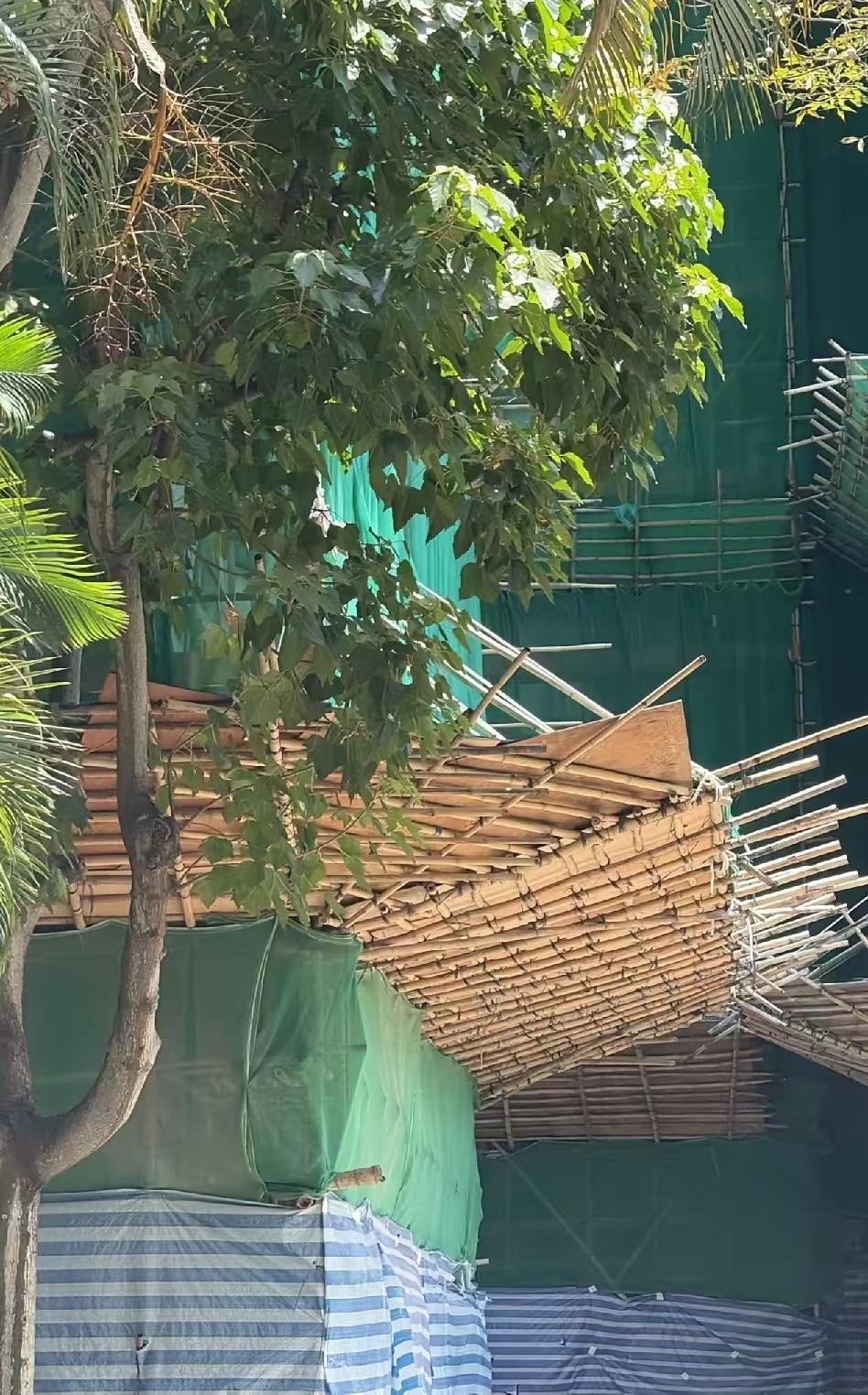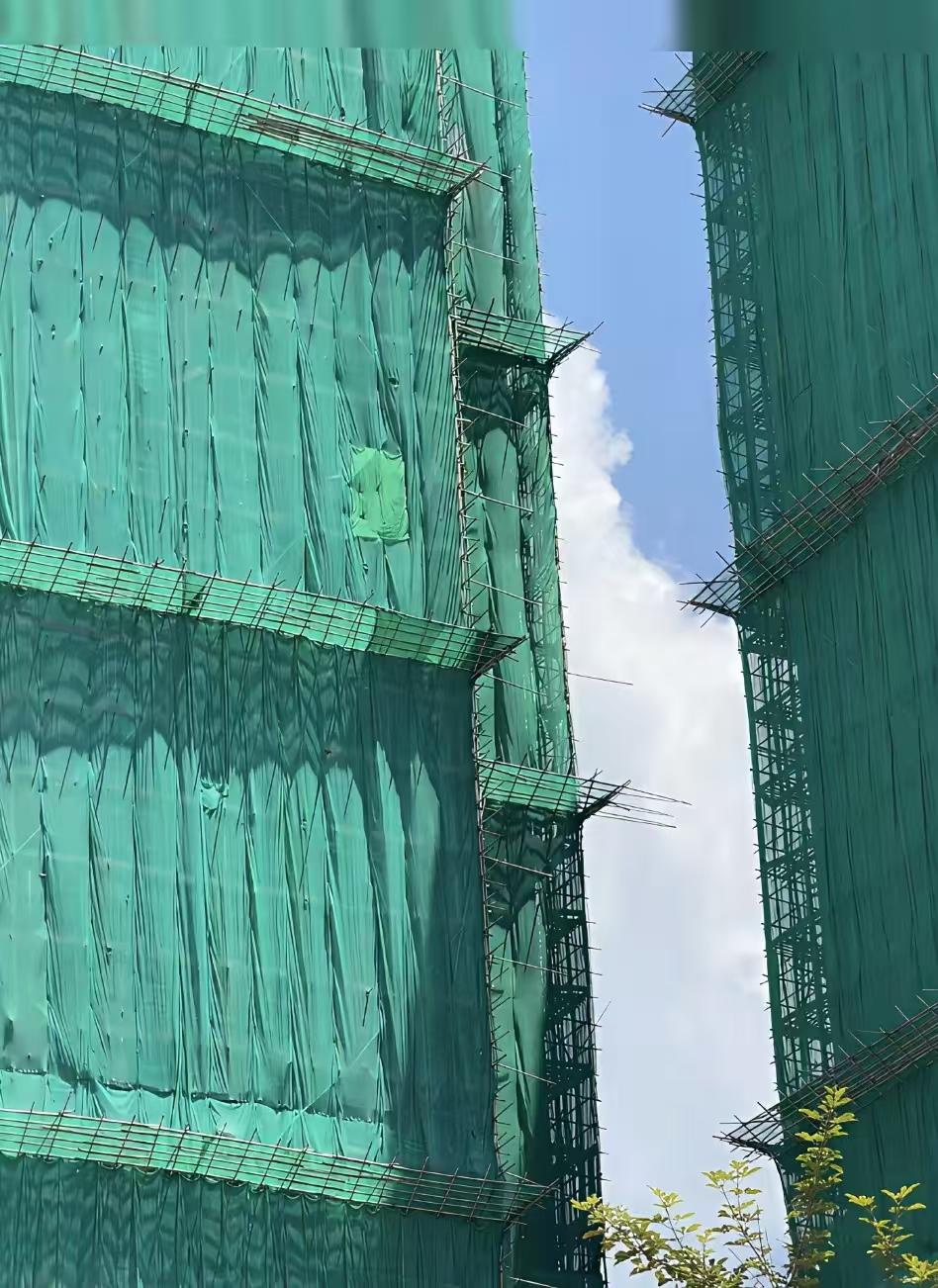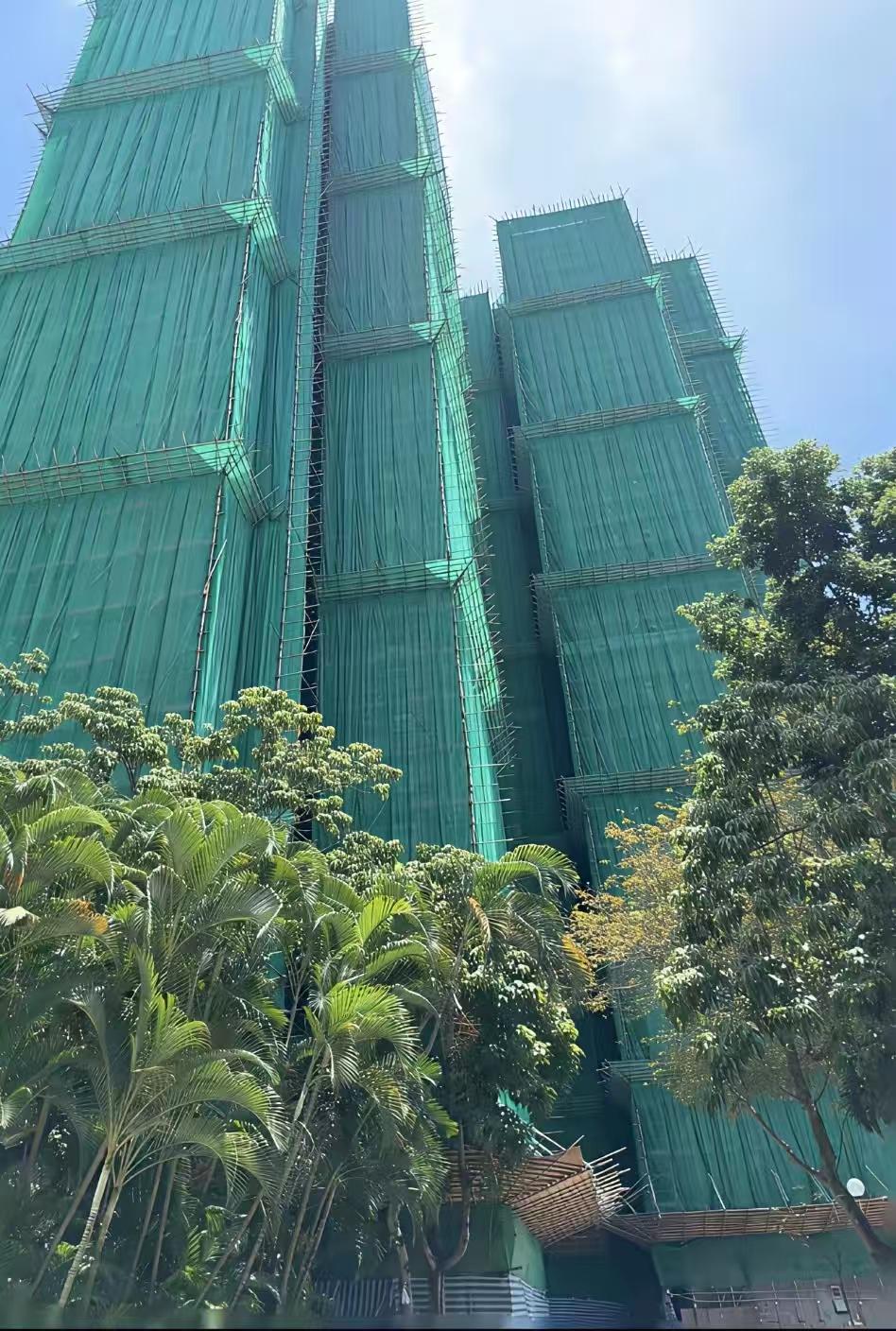 香港宏福苑竹脚架细节,内地人第一次见到大楼会用竹。最先烧起来的就是防尘网,防尘网应该改用阻燃的啊。 香港发达,源于其地理位置和历史背景,其生产力水平并不先进。 这种脚手架只要有火灾就是完美的焚尸场,救不过来。楼间距 10米,这火烧连营的亏,曹操吃过。