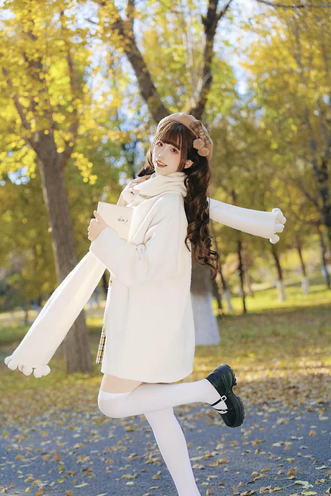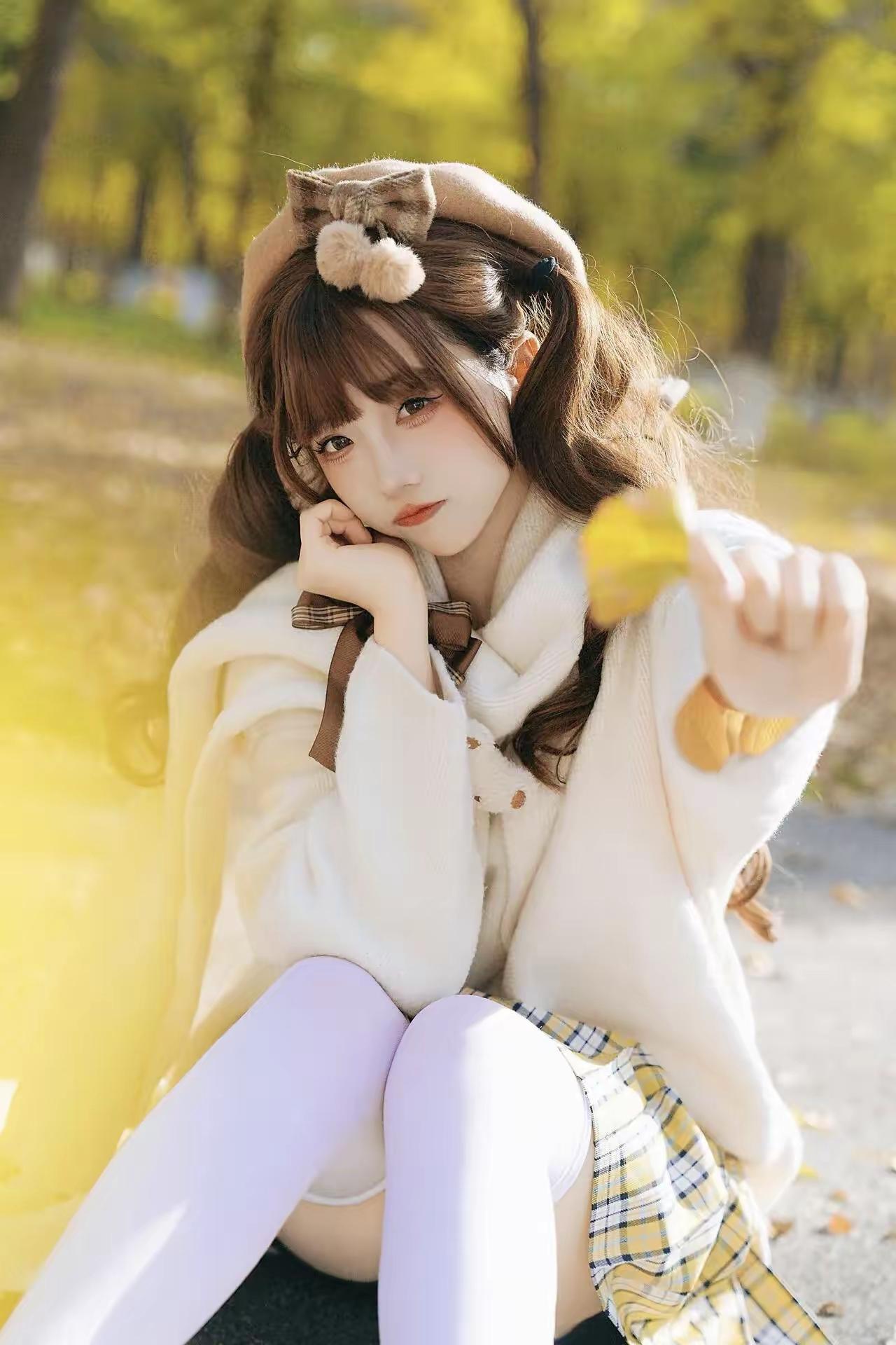 秋日少女,落叶飘零,温柔时光白丝[话题]