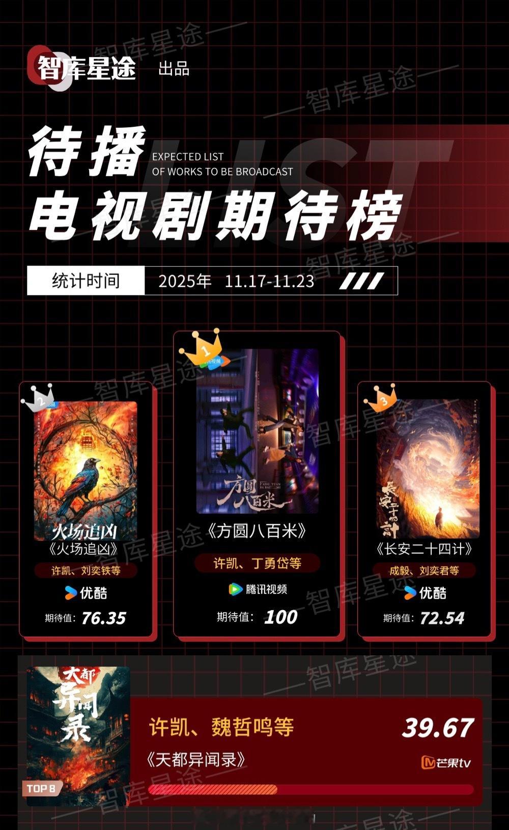 最新一期待播电视剧期待榜恭喜许凯三部男主剧上榜🔥
