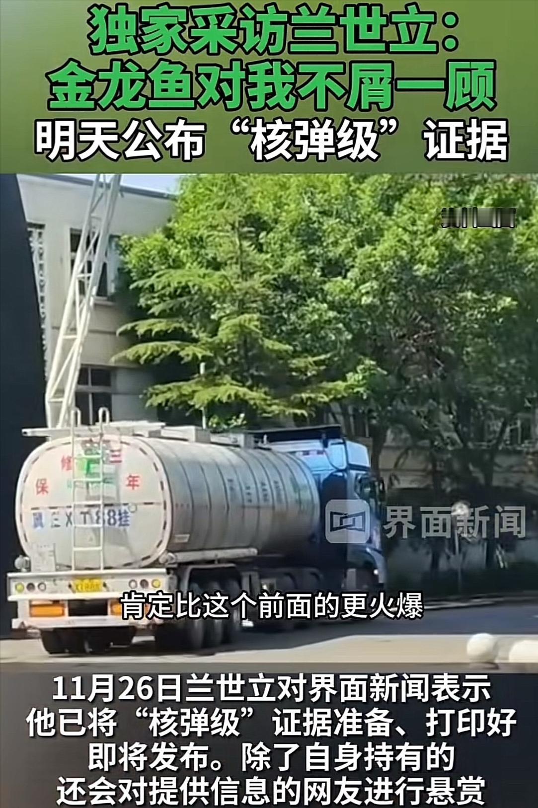 冲突再度升级,前湖北首富兰世立晒证据硬刚金龙鱼。 兰世立和金龙鱼的“大战”又升级了。 之前兰世立因言论侵权败诉,误转10万赔偿款后,吐槽金龙鱼收了钱还冻他账户,差点让他在海外流落街头。 金龙鱼赶紧回应,晒截图说11月18号就退了多余的69300元,还强调执行合法合规。 结果兰世立直接硬刚,说对方声明“不符事实”,吐槽这是钻法律空子,并且晒出了证据,现在两边互不相让。 兰世立之前发表的文章也是为民众发声,现在双方的这个僵局,有很多人站在兰世立这边。 而金龙鱼因为用油罐车运输食用油之后很多人开始抵制金龙鱼的产品。 大家家里现在吃的油是哪个品牌的呢?
