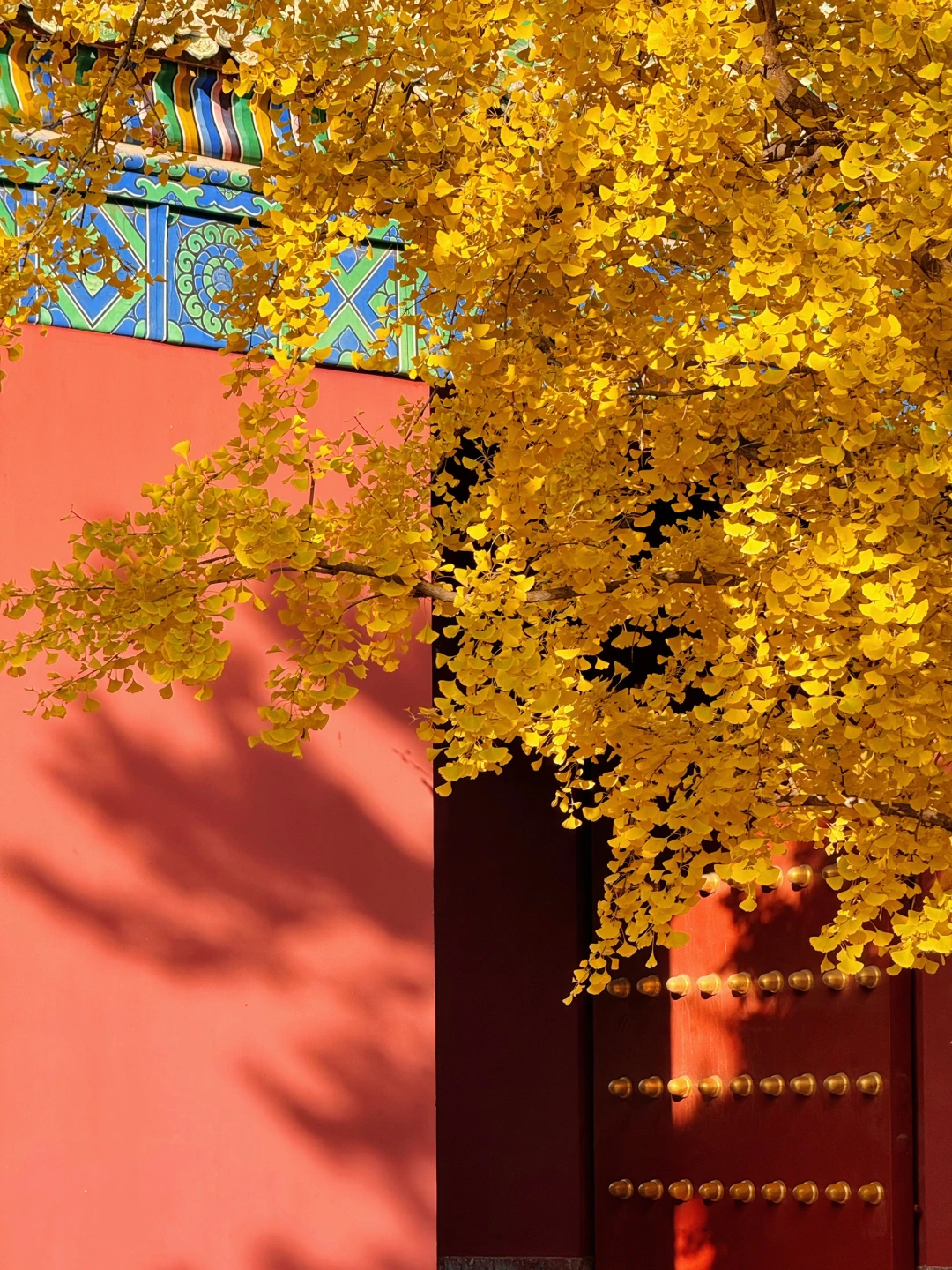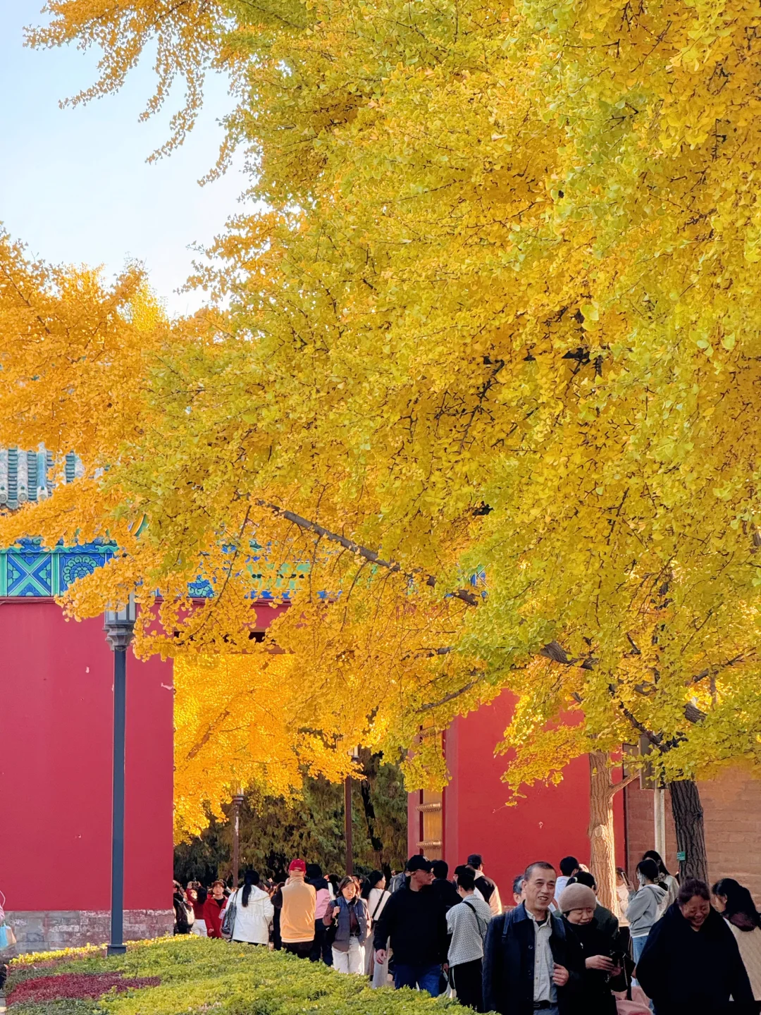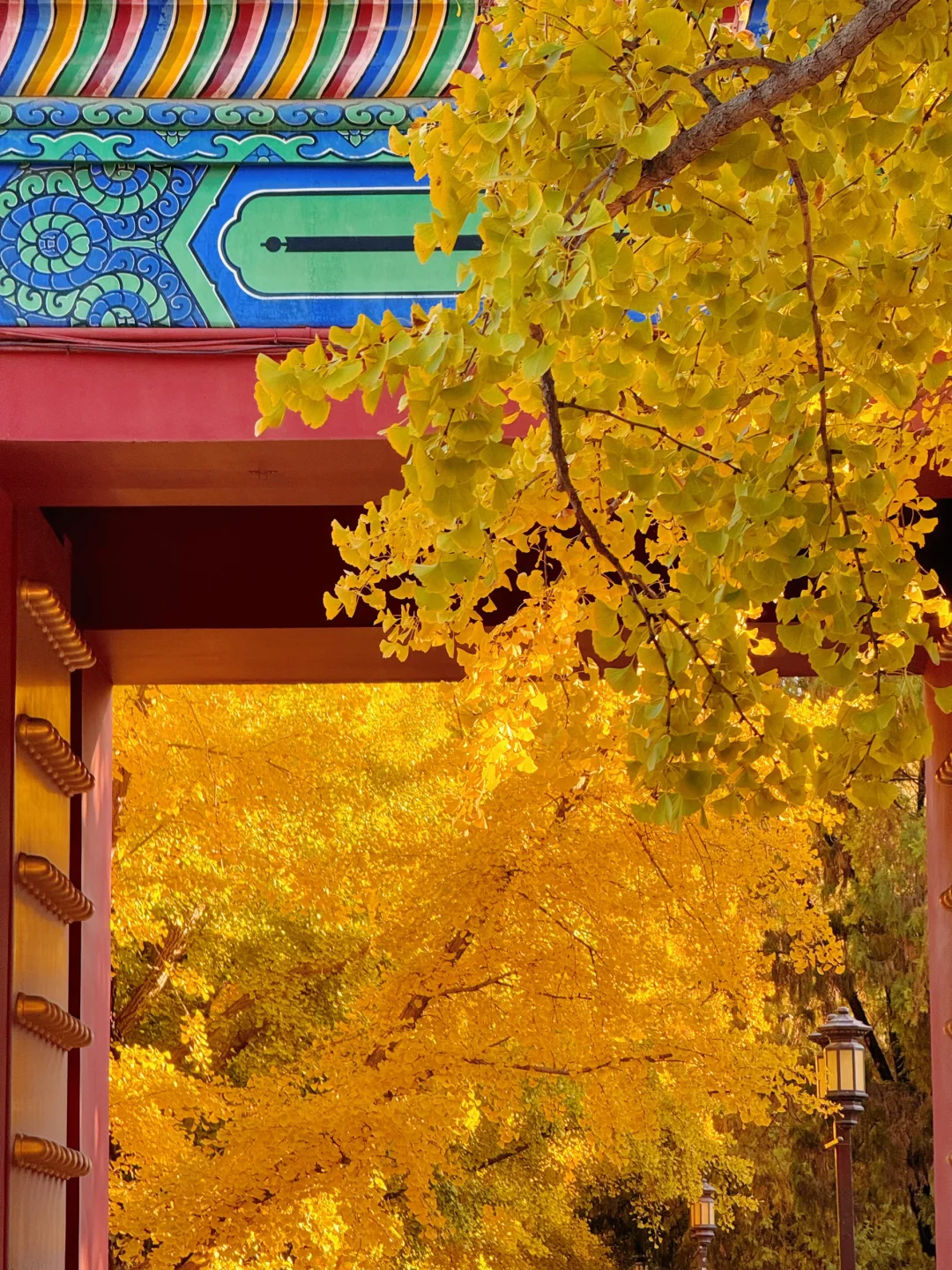 🍁从北门进入,进去就是银杏大道,可以拍到银杏与古建筑。