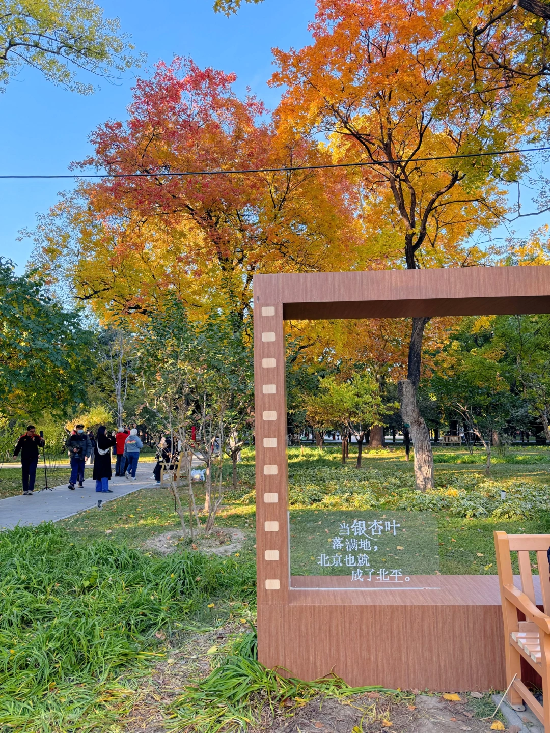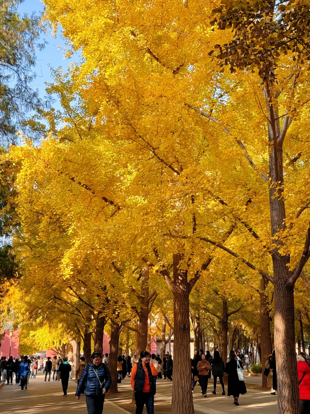 地坛银杏进度50%以上!今天下午突然晴天,银杏在太阳光下,真的就是在发光!风吹起来,金黄的银杏树已经开始落叶,下周末应该就能等到满地落叶+满树金黄了~