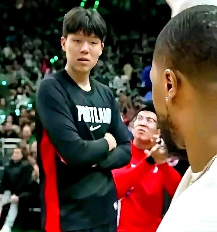 这张图其实挺能说明杨汉瀚在开拓者的境遇。 全队都在为大屏幕上的内容鼓掌欢呼,只有小杨一个人站在那里,完全不知道发生了什么。他听不懂别人在说什么,也看不懂周围发生了什么,这就像当年阿联一样,一身本事却始终无法真正站稳脚跟。