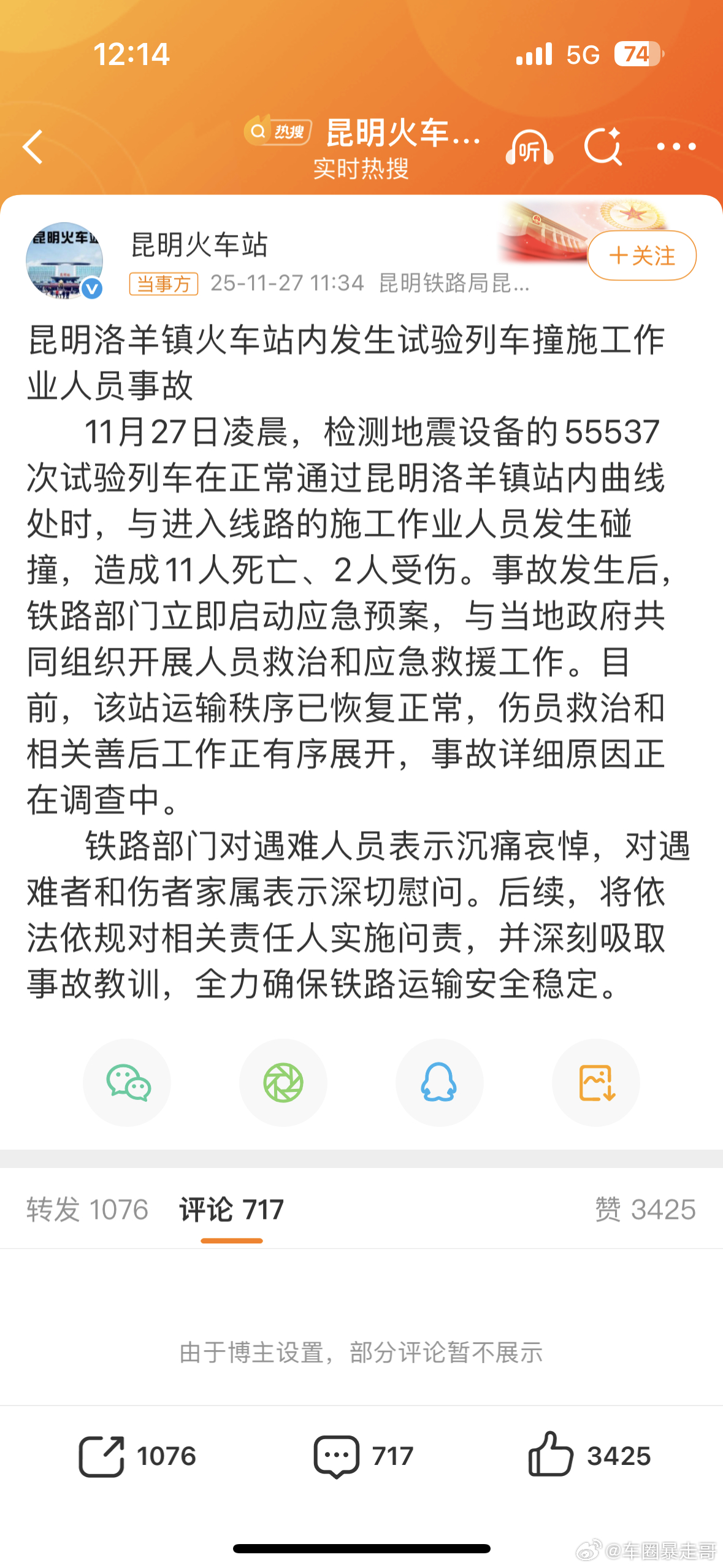 昆明一火车站试验列车撞人致11死香港的火灾还没处理完,昆明火车站又出事了!最近这是怎么了?