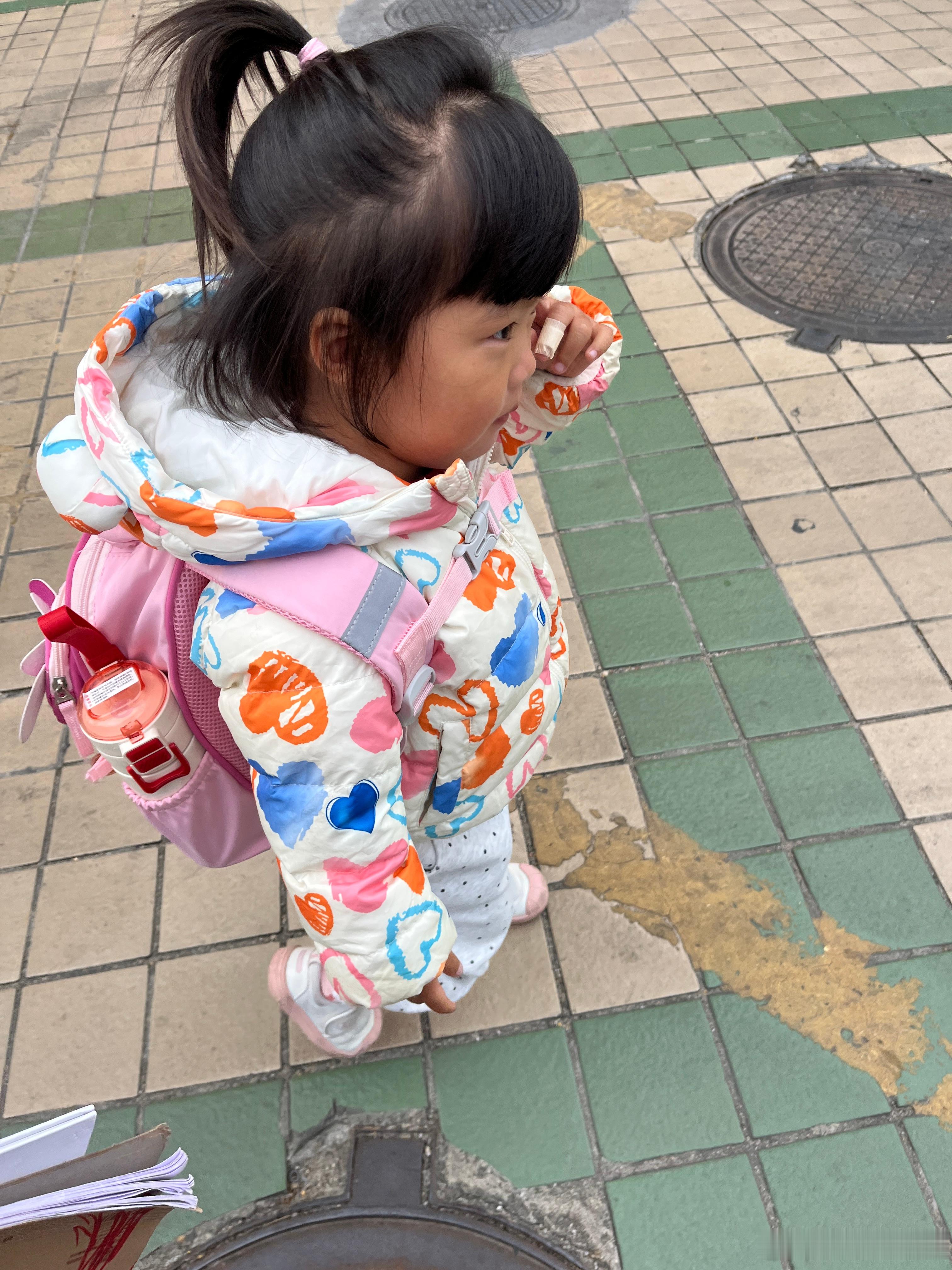 今天比昨天冷很多,不想去上学,昨晚就和我说要请假一天,我说再上一天就可以休息两天,她说不要,要请假,那要明天问一下老师同不同意,她叫我记得问。早上起来又问我,请好假没,老师有没有同意,我说老师没同意,她说没有不舒服,不可以不去。她说妈妈你和我一起去吧!和我一起去上学,我说好,你问一下老师可不可以,我让她自己问,她不敢,让我去问。结果到了学校门口,什么都忘记了,头也不回,乖乖的走进学校,都没和我说拜拜家有萌娃带娃日常