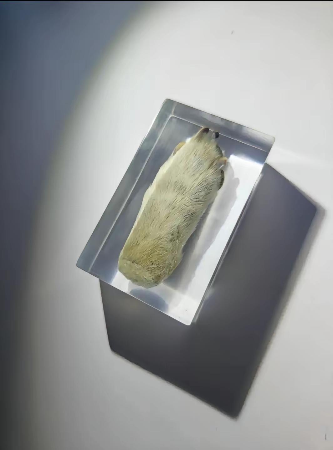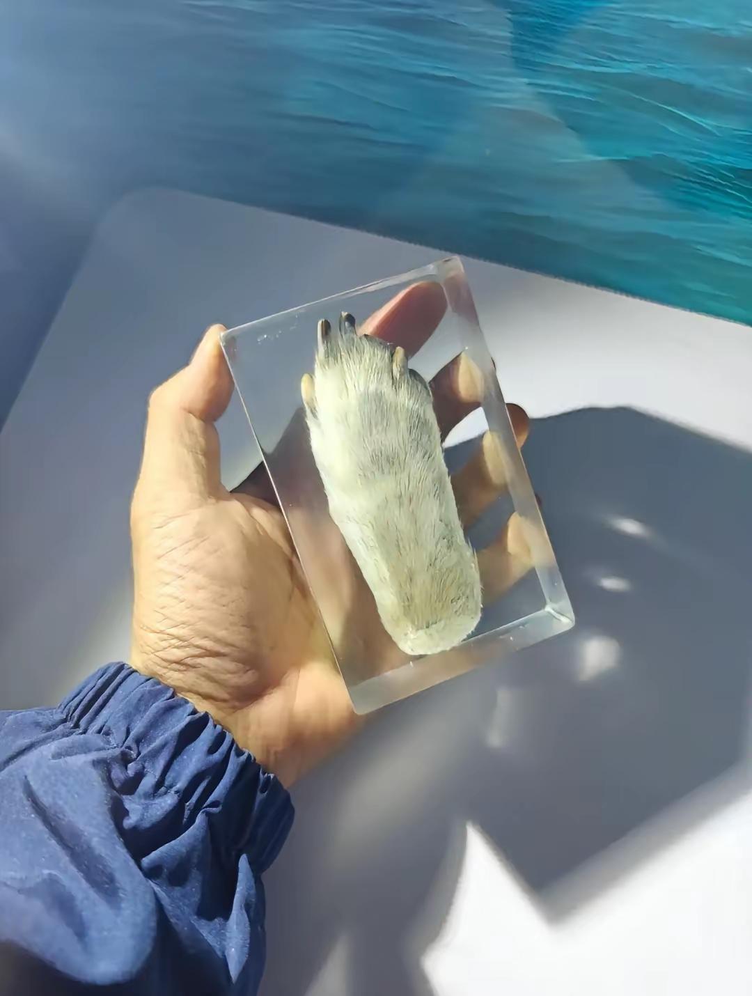 小狗:“该死的人类,我都噶了,还让我去汪星做瘸子!” 小狗都走了,主人居然用树脂封了它的一截腿留纪念,咱懂主人舍不得毛孩子的心情,毕竟养过宠物的都知道,它们早就是家里的一口人了。可纪念的方式有很多啊:存一撮毛、留着它最喜欢的玩具、洗几张它蹦跶得最开心的照片……哪样不是带着温度的念想? 把肢体砍下来封起来,看着就硌得慌——小狗在世的时候肯定是蹦蹦跳跳爱撒娇的,走了也该留个完整的、软软糯糯的模样在回忆里吧?这哪儿是纪念啊,更像把“遗憾”钉在了透明盒子里,连最后的体面都没给它留。 真心劝一句:爱从来不是“占有痕迹”,是记得它活着时的好,让它带着完整的小身子,干干净净去汪星当快乐的小天使呀。大家说是不是?
