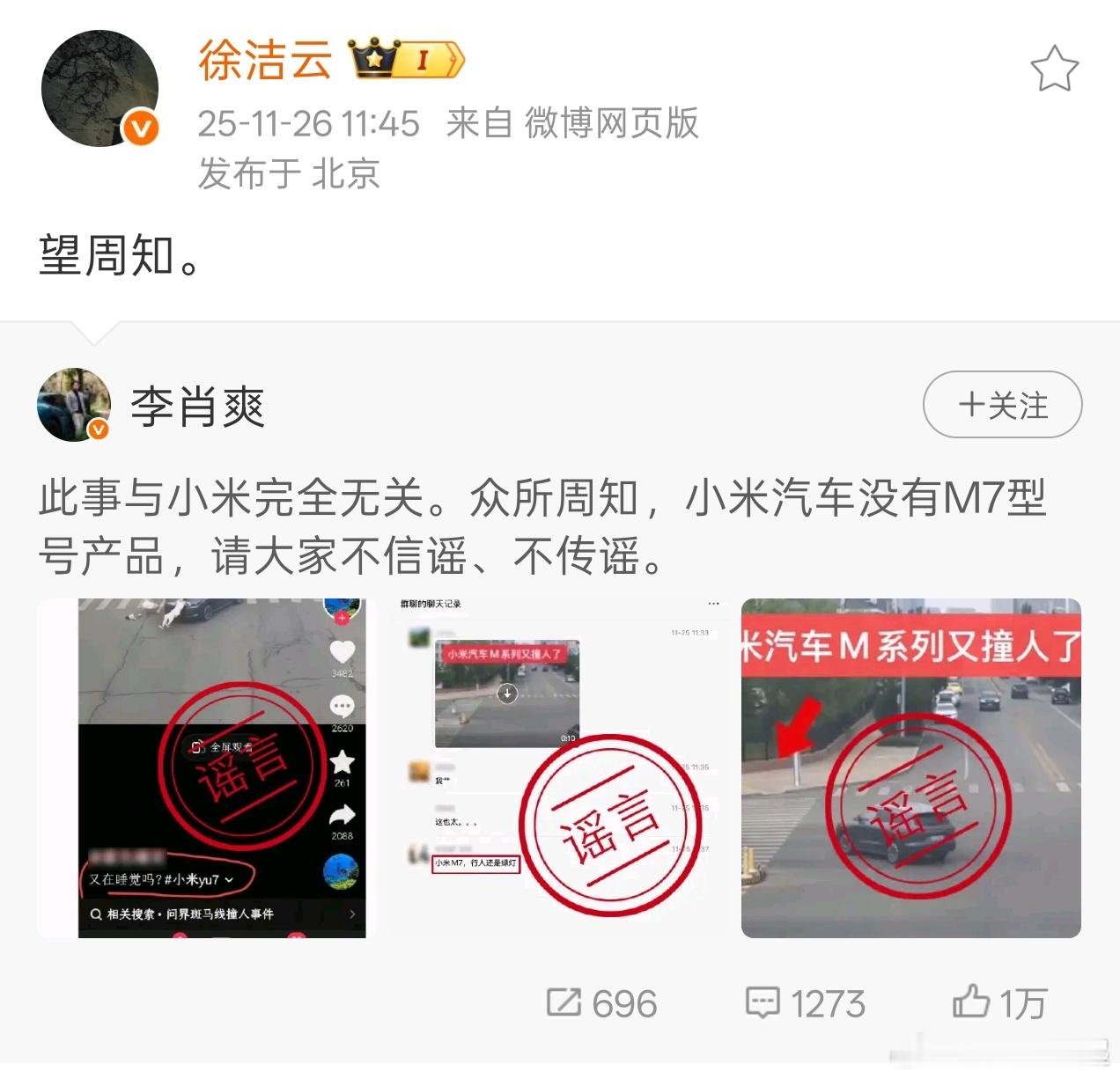 小米新任公关负责人开始辟谣了: 小米汽车没有M7型号产品