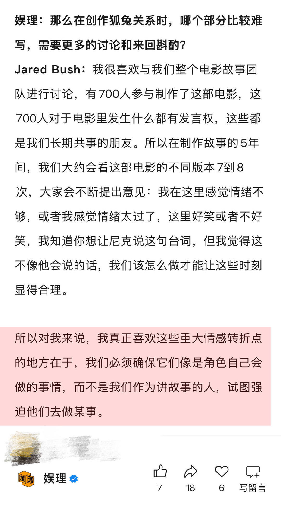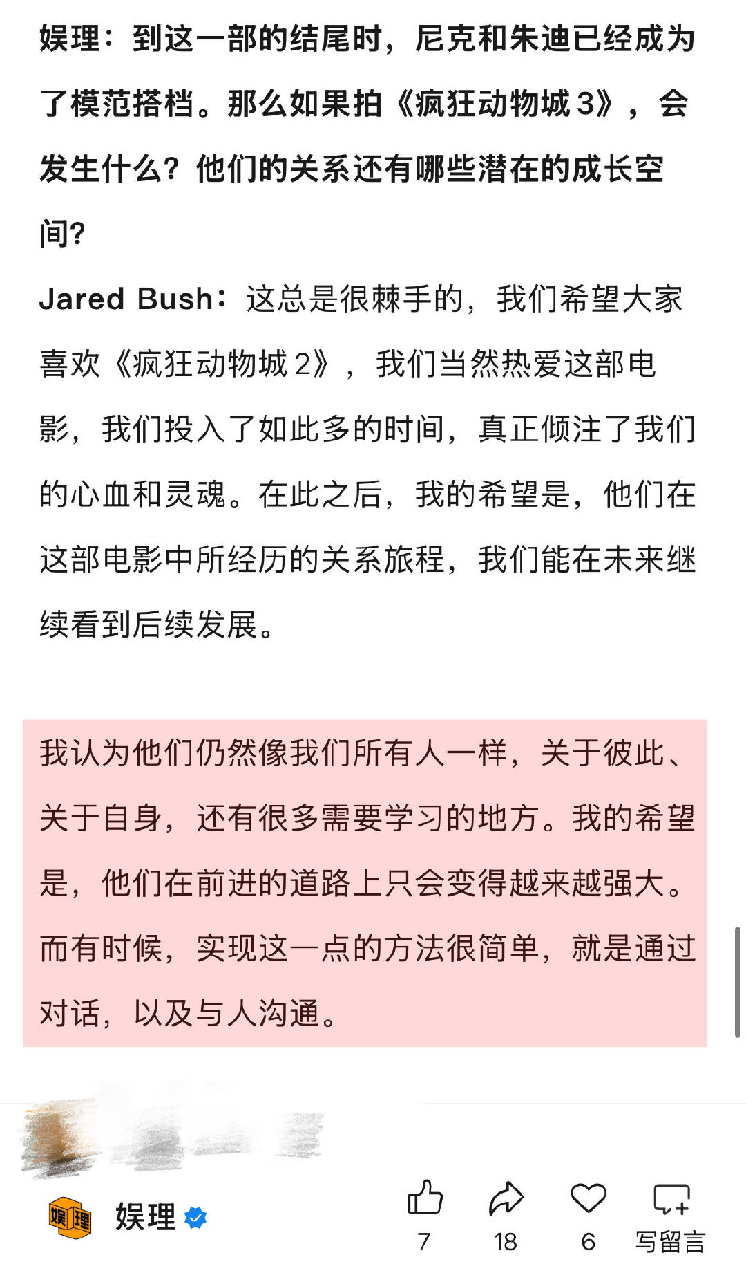 导演谈朱迪尼克是灵魂伴侣的原因 导演回应疯狂动物城3 导演谈《疯狂动物城3》尼克朱迪成长空间:我的希望是,他们在这部电影中所经历的关系旅程,我们能在未来继续看到后续发展。我认为他们仍然像我们所有人一样,关于彼此、关于自身,还有很多需要学习的地方。他们在前进的道路上只会变得越来越强大…娱理独家↓