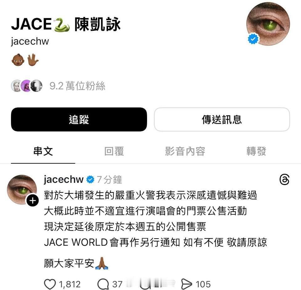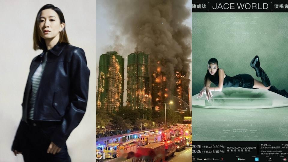 大埔宏福苑五級火|受火災影響今日多個娛樂活動 決定延期或取消大埔宏福苑宏昌閣昨日(26日)下午發生棚架起火,火警一小時內升做四級火警,傍晚6時22分再升為五級火。火勢蔓延得很快,附近數幢大廈都受波及,截至昨晚11時,火警已造成13死30傷,當中包括一名消防員殉職,直到今日(27日)凌晨火警仍未救熄。大埔宏福苑五級火,消防鋼梯繼續救援。(夏家朗攝)全城關注火警的情況,不少藝人都出一分力幫忙轉發救援資訊。而今日原定舉行的多個娛樂活動都相繼宣布延期或取消,包括有:JACE陳凱詠演唱會延期開售、《優獸大都會2》首映禮取消、佘詩曼聖誕亮燈活動延期、陳家樂及連詩雅的聖誕活動啟動禮延期、「粤劇特朗普記者會」延期、舞蹈團四十五周年舞劇《武道》記者會部份取消。佘詩曼聖誕活動都取消。(ig