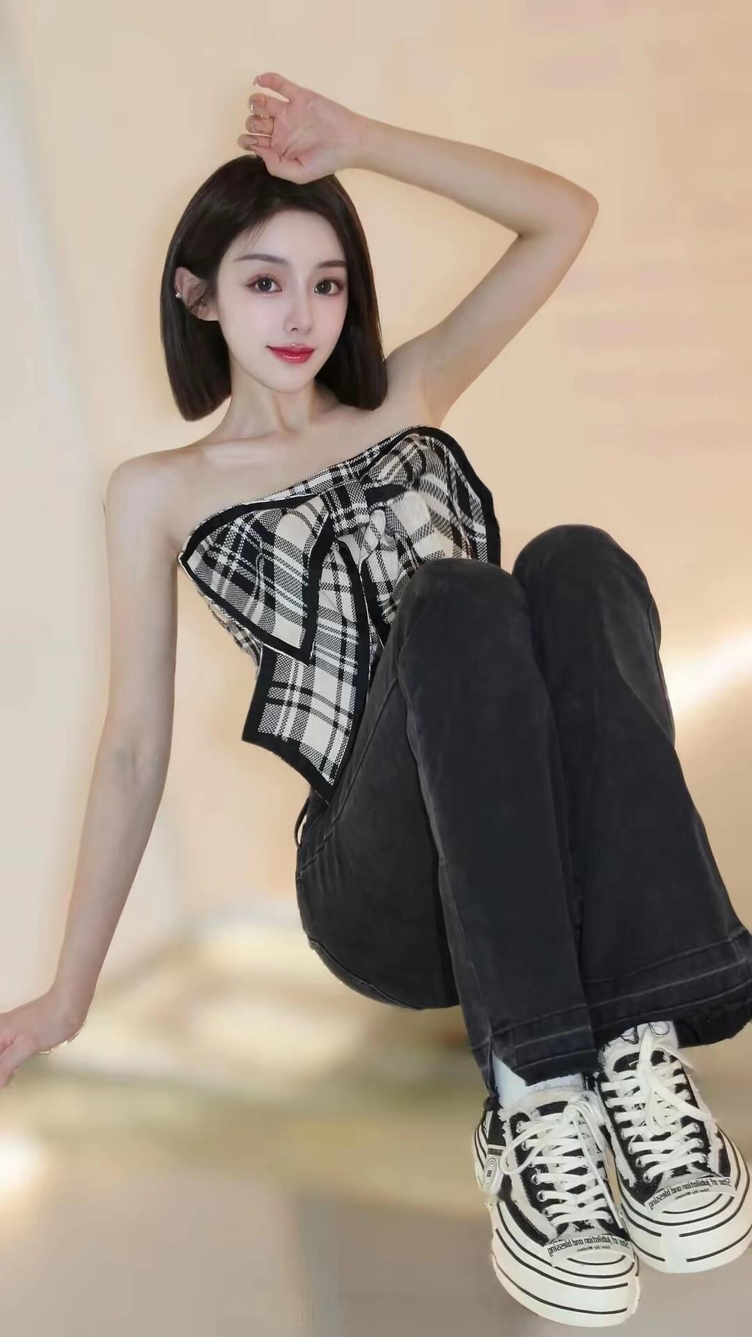 复古风穿搭,黑白格纹吊带裙搭配高帮帆布鞋,时尚又舒适!