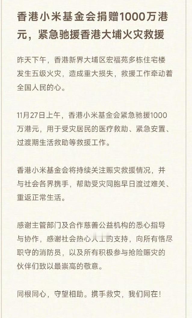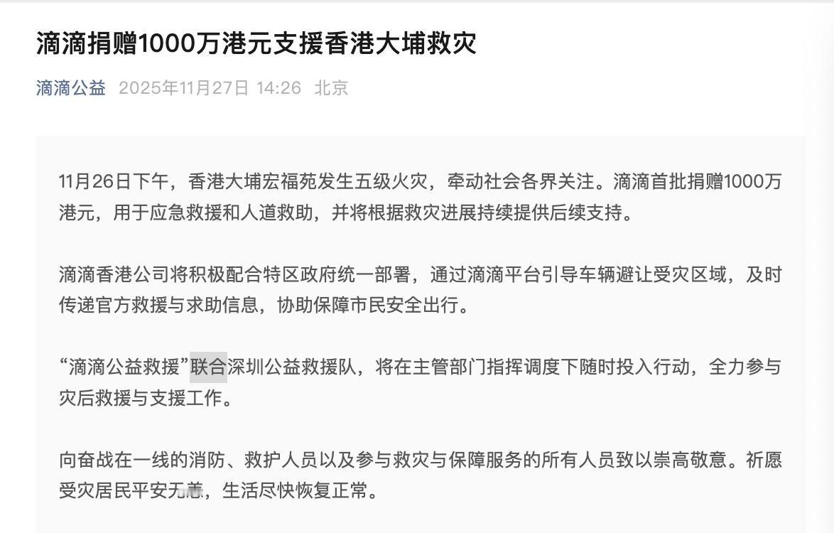 多家企业捐赠驰援香港 汽车企业中,率先驰援的两家企业比亚迪捐赠1000万港元紧急驰援香港大埔火灾救援小鹏捐赠500万港币滴滴出行,1000万港币香港小米基金会捐赠1000万港元