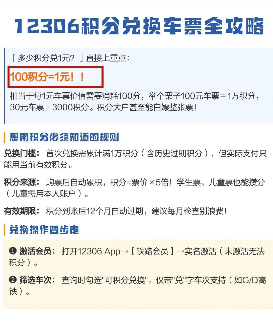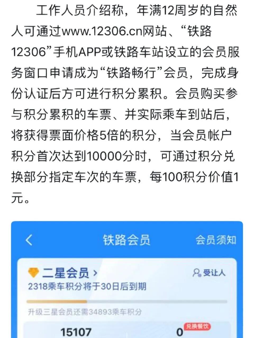 12306积分可不能直接转让!官方说了,想给亲友兑车票,得先添加“受让人”才行,网上那些“积分转让”“出售积分”的说法,全是违规操作,千万别信。 给大家捋捋核心规则:每名12306会员最多能加8个亲友当受让人,但添加后得等60天(含当天)才能生效;积分的价值很明确,100积分顶1块钱。 最近有些二手平台上,有人低价卖12306积分,还让你给姓名、身份证号这些敏感信息,把你加为受让人,等60天后帮你兑票。这事儿风险特别大:一来这是违规的,长期这么干可能涉嫌倒卖车票罪;二来个人信息可能被泄露;三是很容易被骗,付了钱没票,或者被卖家拉黑,维权都难。 正确用积分的方式记好了:积分攒够10000分才能兑换车票,坐车到站后5天内积分会自动到账;自己兑票选带“兑”字的车次就行;给亲友兑票,要提前60天加好受让人;积分兑的票能改签1次,但要扣部分积分,不能退票也不能改到站。 千万别贪低价走非官方渠道,合规使用才安全。 12306 12306服务 12306争议 12306功能 12306折扣 高铁积分换票 铁路积分优惠