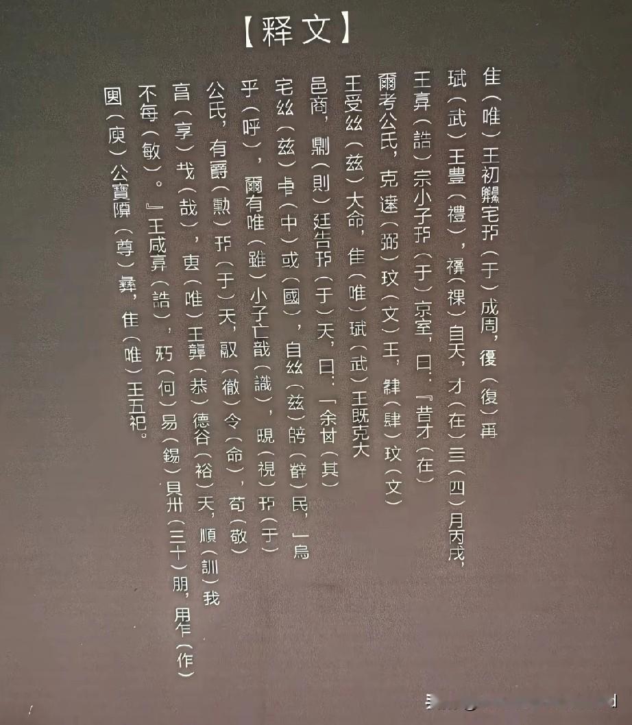 何尊铭文见斟酌 何尊铭文释读争议以及周原与丰镐遗址的诸多新考古发现,进一步说明将“唯王初迁宅于成周”解读为成王迁都洛邑的说法站不住脚,以下结合最新考古成果补充更多细节来强化这一论证: 1. 何尊铭文释读争议进一步被细化,迁都说法根基更不稳:除了“迁”实为“壅”的观点,学界还有多种释读否定迁都。比如李学勤认为该字是祭名“禋”,“宅”也无定都之意,仅指周王居住在成周;张政烺则认为此字通“省”,意为“相宅”也就是选址,和迁都无关。且何尊铭文记载“宅于成周”是在成王五年四月,而文献中洛邑营建成于成王七年,当时洛邑还处于地基开挖阶段,根本没有能供王室居住理政的“京室”,从时间线看迁都洛邑也不可能发生。 2. 周原遗址新考古发现,印证其成周属性 :2024年周原遗址入选全国十大考古新发现,近年这里不仅揭露了规模达2500平方米的王家嘴一号先周大型夯土建筑,还发现了“宫城”、小城与大城三座西周城垣,三重城墙在西周晚期共存,清晰呈现出都邑的空间结构。此外,遗址内的凤雏甲组建筑等大型宫室基址,规格完全符合铭文里“京室”(宗庙建筑群)的礼制标准。更关键的是,何尊本身就出土于周原核心区,周公临终要求葬于成周,其墓葬也确在周原岐山,这些都印证了成周指向周原的合理性。 3. 丰镐遗址的遗存,持续夯实其西周核心都城的地位 :丰镐遗址总面积近17平方千米,2021年发现疑似天子宗庙遗址,2022年发掘出最大的西周制陶遗址,2025年还在丰京遗址发现了西周晚期偏早的制骨作坊,且遗址西南部可能形成了“手工业园区”。此前发掘的镐京十四号建筑总面积超1800平方米,伴有祭祀坑等遗迹,大概率是天子用宗庙或宫室建筑。这些持续发现的高规格宫室、宗庙遗迹,以及完善的手工业遗存,印证了丰镐长期是周王室稳定聚居、理政祭祀的核心区域,“丰镐成周说”形成了考古与学术观点的呼应。 4. 洛邑的考古短板仍未补齐,难撑成周都城之说:即便有观点称瀍河两岸有相关遗存,但洛邑始终未发现西周早期完整的都城级城址。那些主张成周即洛邑的观点,常将礼制建筑遗存当作依据,可这类遗存规模和规格,远不及周原、丰镐的宫城与宗庙建筑群。而且洛邑区域西周早期的遗存多是祭祀坑、小型聚落遗迹,缺乏都城必备的大型行政、居住建筑群,与成周作为核心都城应有的遗存格局相差甚远,根本无法和关中两地的考古证据链相抗衡。 洛邑,只不过是周王室震慑东方的大门和关押殷商顽民的重要地点而已。
