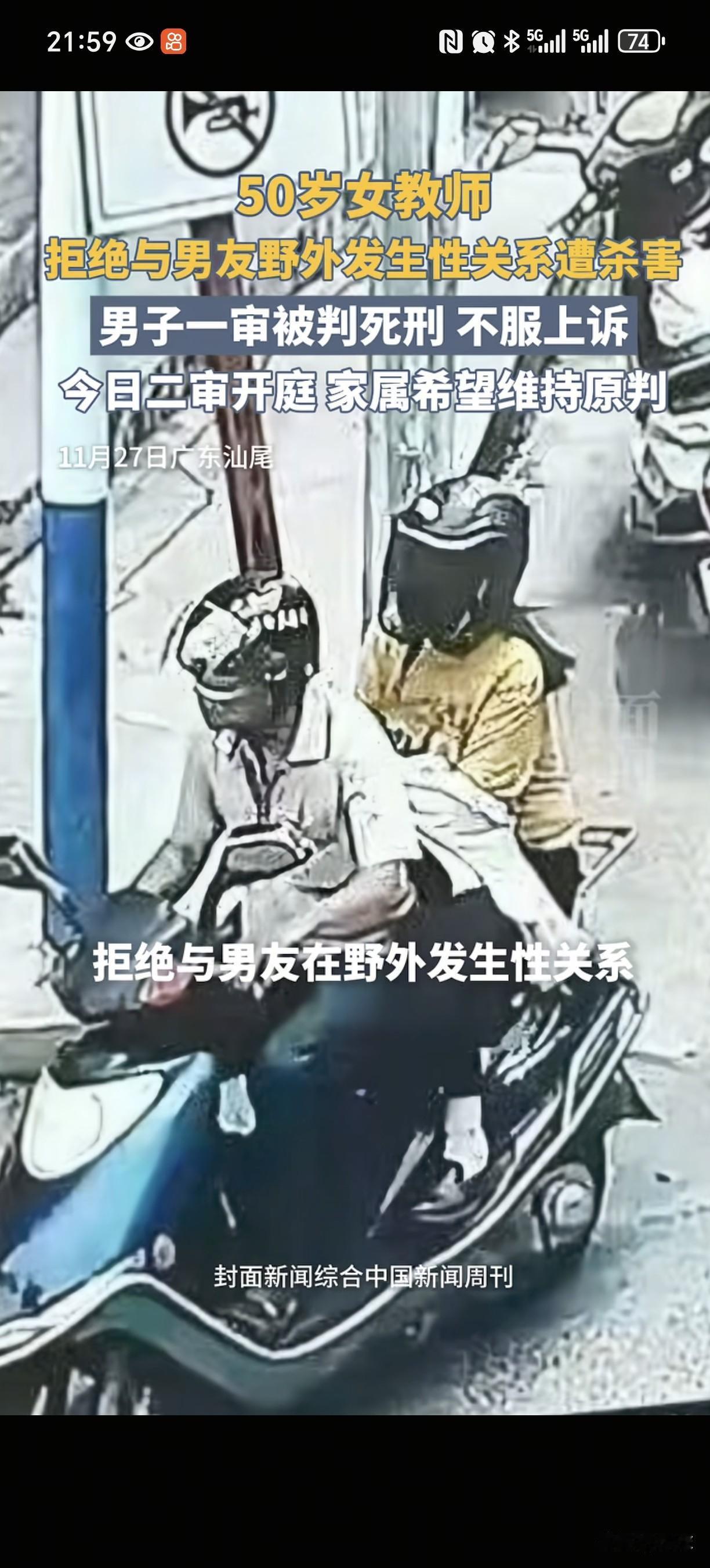刚刚刷到广东发生一起命案,女方是老师,和男友同居11年,去年11月26日,两人因野外发生性关系起争执,男的拿刀把女方砍死,一审判了死刑,现在男方在上诉。 死者女儿说妈妈失踪那天下过雨,找了三天没消息,后来靠做DNA才确认尸体是妈妈,警察说案发地监控太少,连基本影像证据都不全。 法院还没终审结果,但找人过程暴露大问题:打妇联电话没人接,户口本上婚姻状态还是单身,这种事到底该怎么防,还是个难题。 《图片来源于网络》