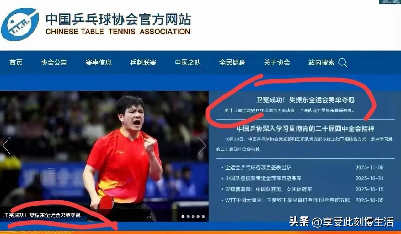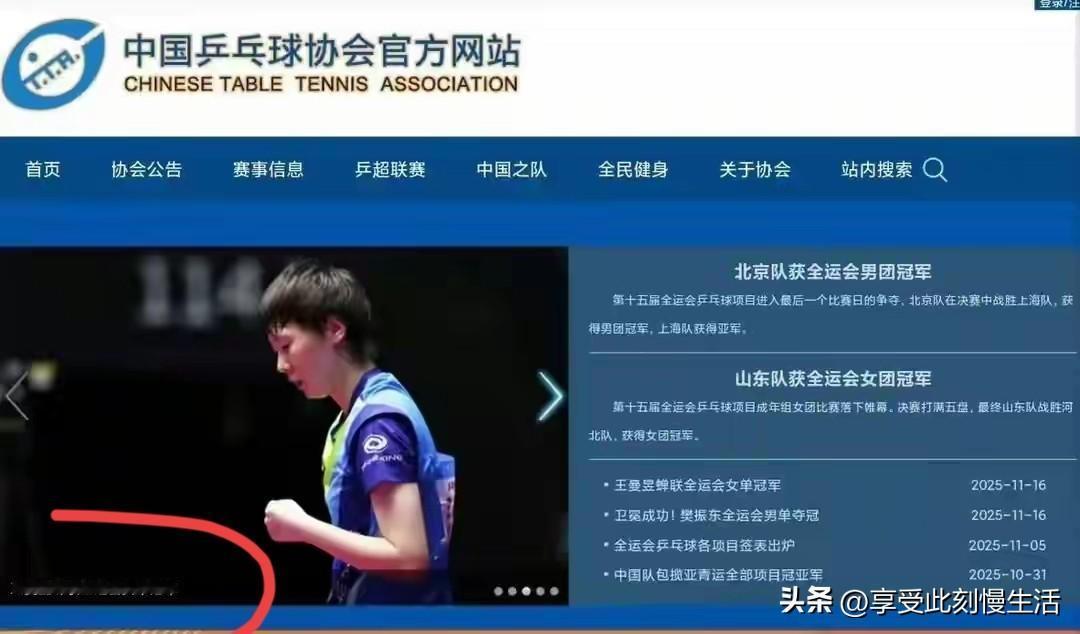 迟到的全运会未冕女单冠军终于在10天后中国乒协官网给了一个更新推送。 11月16日樊振东击败王楚钦未冕全运会单打冠军。中国乒协官网立马更新动态。然而同一天拿到女单未冕冠军的王曼昱却遗憾的没有出现在中国乒协官网上。 细心的网友在浏览中国乒协官网的时候发现只有樊振东而没有王曼昱。不知道是中国乒协官网的人高兴的忙乎忘记了还是咋地。经过球迷不懈的反馈和质疑,中国乒协官网终于在10天后给更新推送。但是抬头纹还不一样。 难道都是未冕冠军因为省队不一样待遇就不同吗?