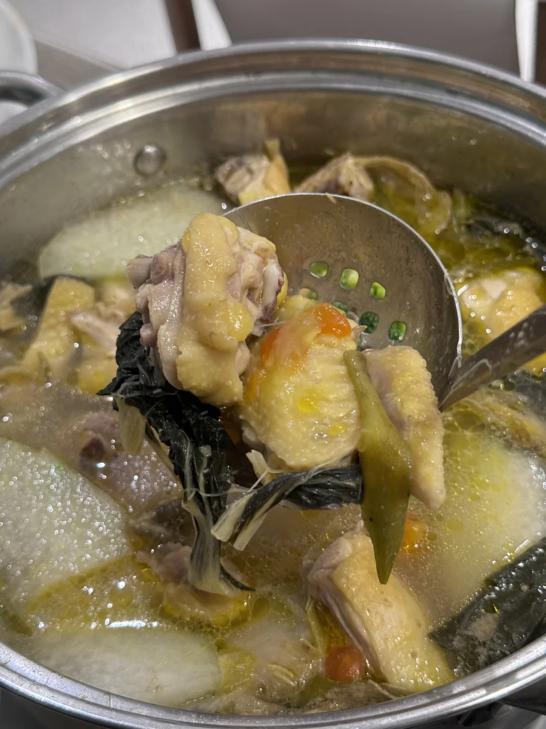 呀 去朋友家玩顺路去吃了个鸡🐔! 没想到如此好吃😋!被惊讶到! 煮出来的汤好漂亮~金鸡汤😃 汤底好特别呢!木瓜霸王花🌹汤底!👍 阳山鸡是现切现杀的哦、肉质新鲜弹口🤤 石锅翅好好吃!!!分量足! 我好满意这家花胶😌特粘嘴 哈哈哈哈哈 这个店铺有两只袋鼠!!😆好好玩!简直带娃神器! 我们干🍚孩子有“人”带!解放双手! TiT智慧园里面有停车场也很方便呢 停车场很大!!!!放心冲! 店名🔎🏡自家竹丝鸡·鸡记冰室·起片鸡煲 📍广州天河区TIT智慧园东门(城市客厅旁)