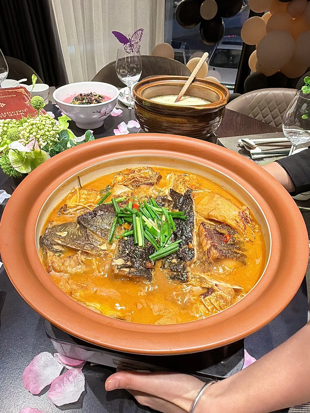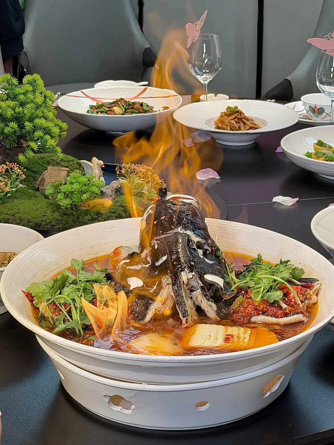 在这里过生日太幸福啦(〃'▽'〃)🥰 感觉像大户人家的后花园,有绿植环绕的院子,还有小桥流水,鱼船!每个角落都好出片啊!而且包厢很多,还能🆓布置生日主题!!!🎂 请客吃饭聚餐都贼有排面了👏🏻 菜式看得眼花缭乱真的贼多选择!!! 而且所有食材都是新鲜现做!拒绝预制菜! ✔️大湖雄鱼✔️剁椒鱼头王✔️小炒雪花牛肉 ✔️魔法书脆皮鸡✔️青椒煎鹅蛋✔️养生黑金豆腐