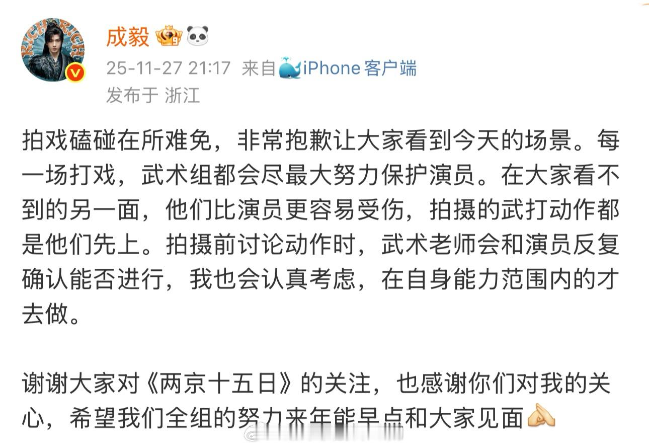 哎,成毅自己出来回应了 成毅回应两京十五日拍摄受伤