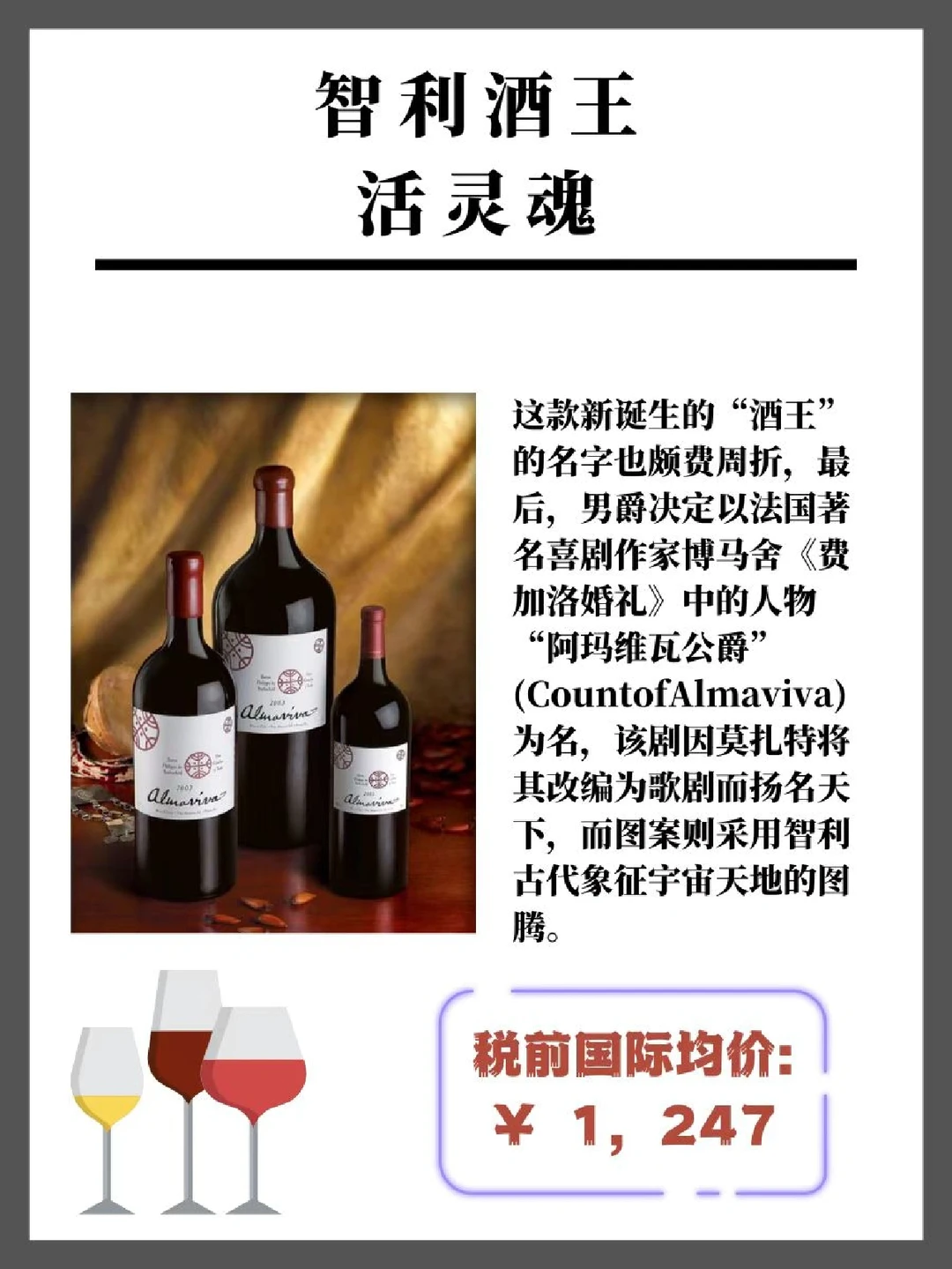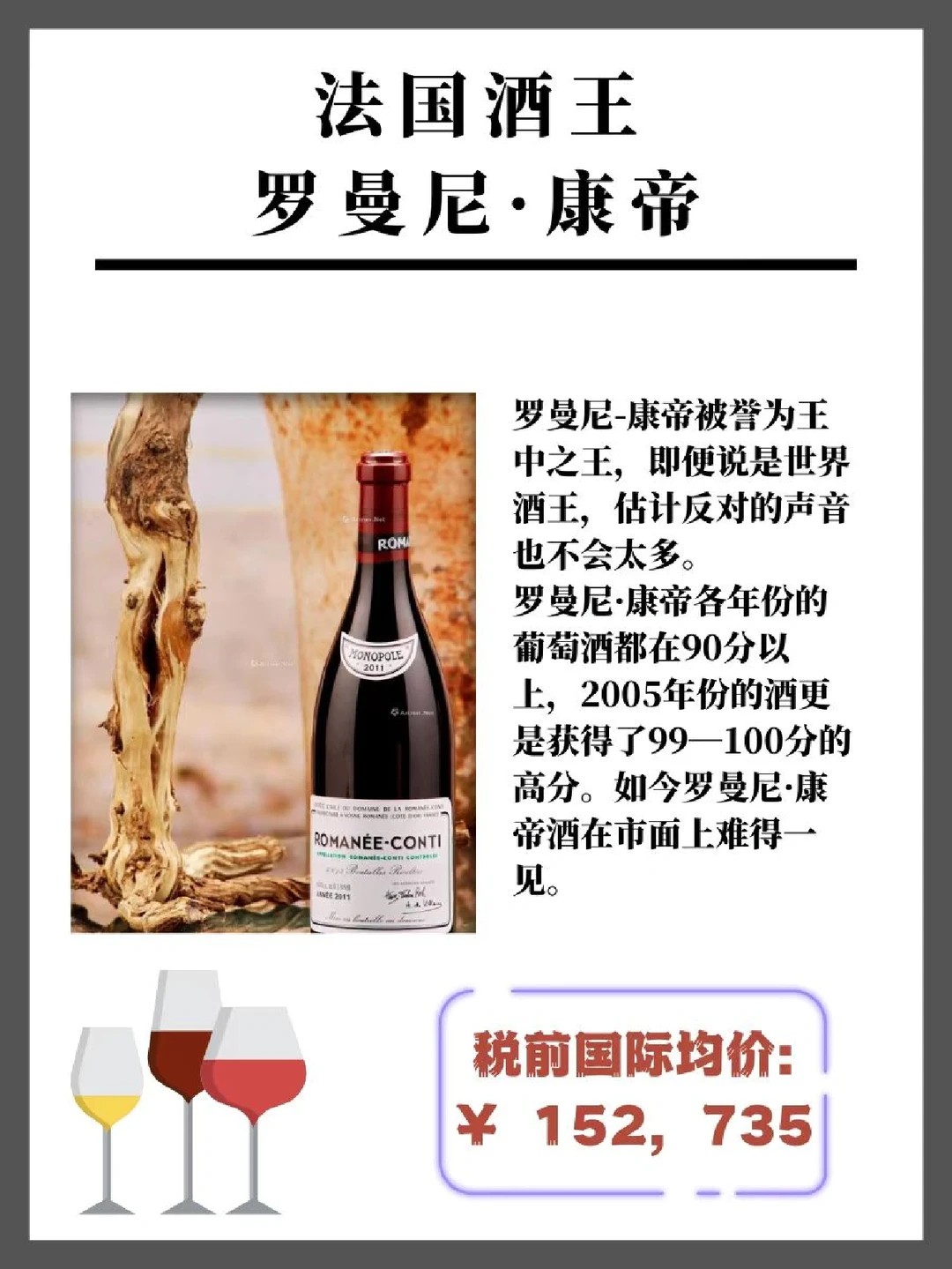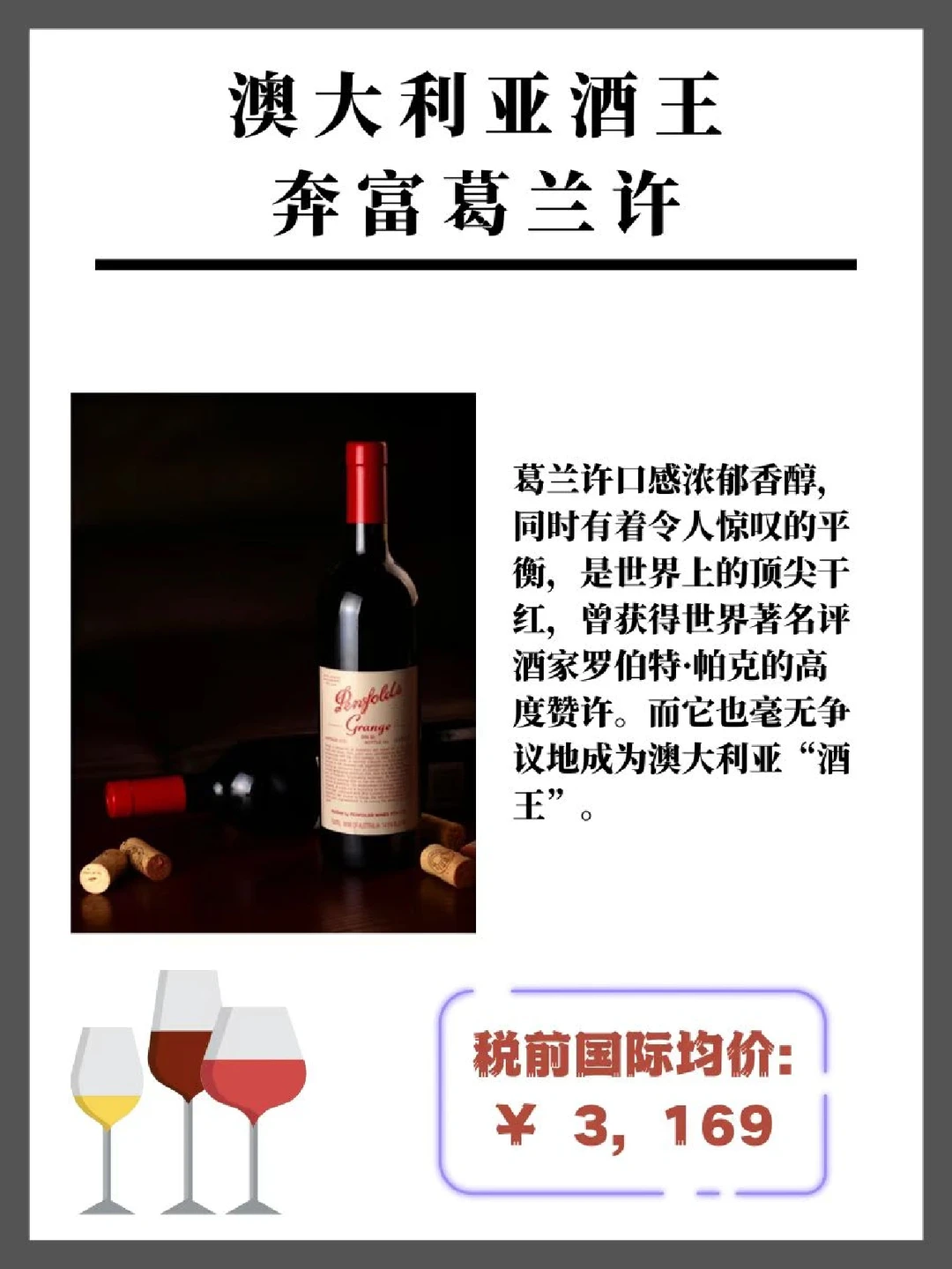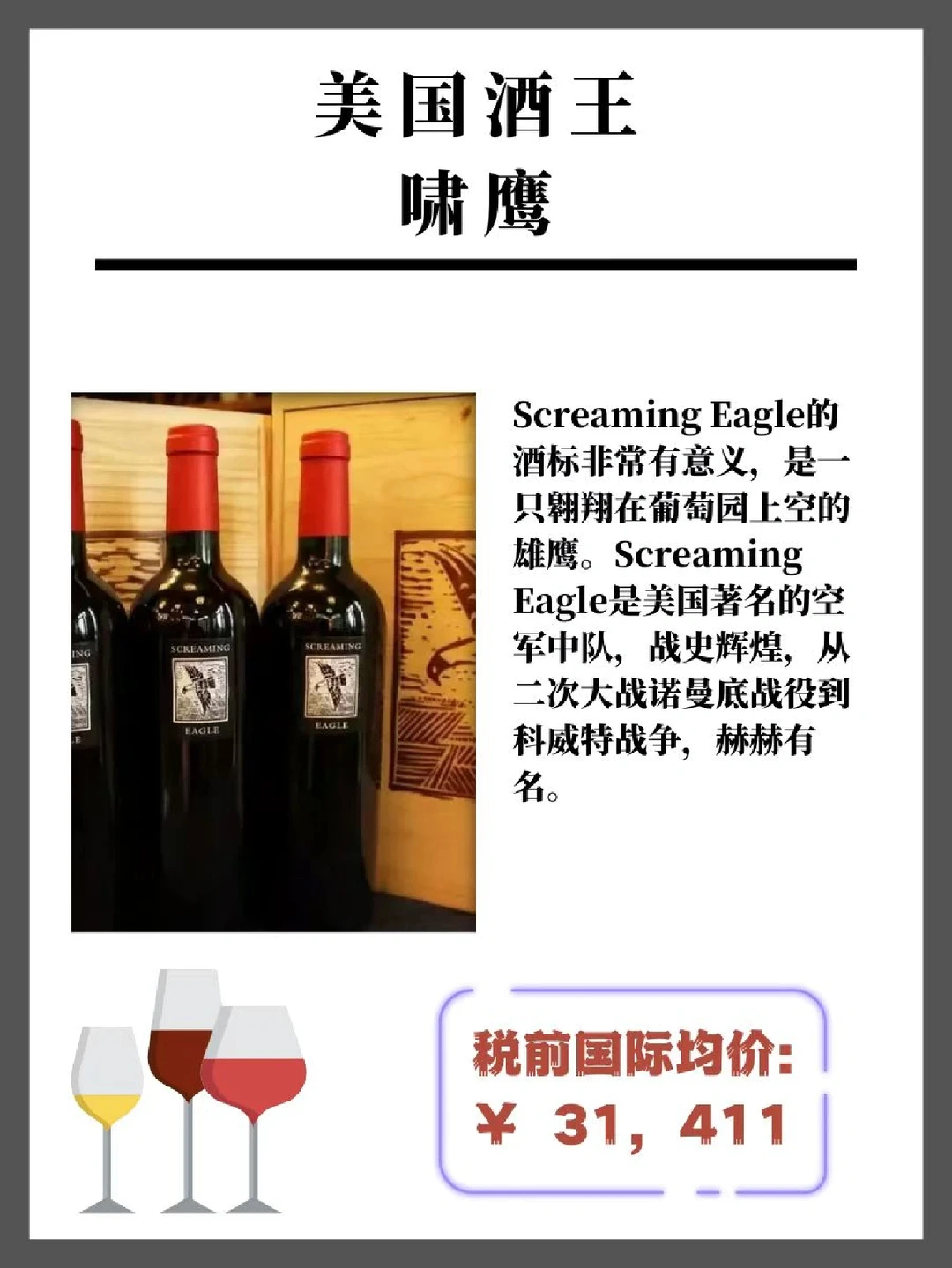 每一个经典的葡萄酒产酒国中,都有一个为公认的“酒王”。虽无正式的官方评比认证,每个酒王都有让你臣服的理由。今天就为大家来盘点下各国的酒王。 🇫🇷法国:罗曼尼•康帝DRC 💫法国有十大葡萄酒产区,最具知名度的就是波尔多与勃艮第。 💫勃艮第酒王则非罗曼尼-康帝(la romanee conti)莫属。它甚至被誉为王中之王,世界酒王 🇮🇹意大利:西施佳雅Sassicaia 西施佳雅是意大利“四雅”之首,它不仅是超级托斯卡纳之王,也是当代意大利当之无愧的“酒王”。 🇩🇪德国:伊贡穆勒Egon Muller 伊慕酒庄所产的雷司令有“德国雷司令之王”美誉,其中,沙兹堡逐粒精选葡萄干甜白葡萄酒(Scharzhofberger Riesling Trockenbeerenausles)是世界第一贵甜白,是名副其实的“德国酒王”。 🇪🇸西班牙:平古斯 作为世界上葡萄种植面积最大的国家,西班牙酒庄林立,风格迥异,但是说到“酒王”,却是众望所归:平古斯 🇺🇸美国:啸鹰Screaming Eagle Screaming Eagle的酒标非常有意义,是一只翱翔在葡萄园上空的雄鹰。Screaming Eagle是美国著名的空军中队,战史辉煌,从二次大战诺曼底战役到科威特战争,赫赫有名。 🇨🇱智利:活灵魂(Almaviva) 💫作品一号获得成功之后,男爵再接再励,决心将杰作再度复制,活灵魂由此而来。 💫“酒王”名字来自于法国著名喜剧作家博马舍《费加洛婚礼》中的人物“阿玛维瓦公爵”(count of almaviva),酒标图案则采用智利古代象征宇宙天地的图腾。 🇦🇺澳大利亚:奔富葛兰许(Penfolds Grange) 葛兰许采用不同产区的西拉、赤霞珠混酿而成,口感浓郁香醇,同时有着令人惊叹的平衡,获得了世界著名评酒家罗伯特•帕克高度赞许,毫无争议地成为澳大利亚“酒王”。 🇨🇳中国:茅台Mao Tai 茅台酒,贵州省遵义市仁怀市茅台镇特产,中国国家地理标志产品。茅台酒是中国的传统特产酒。与苏格兰威士忌、法国科涅克白兰地齐名的世界三大蒸馏名酒之一,同时是中国三大名酒“茅五剑”之一。 🎉关注我带你了解更多葡萄酒知识