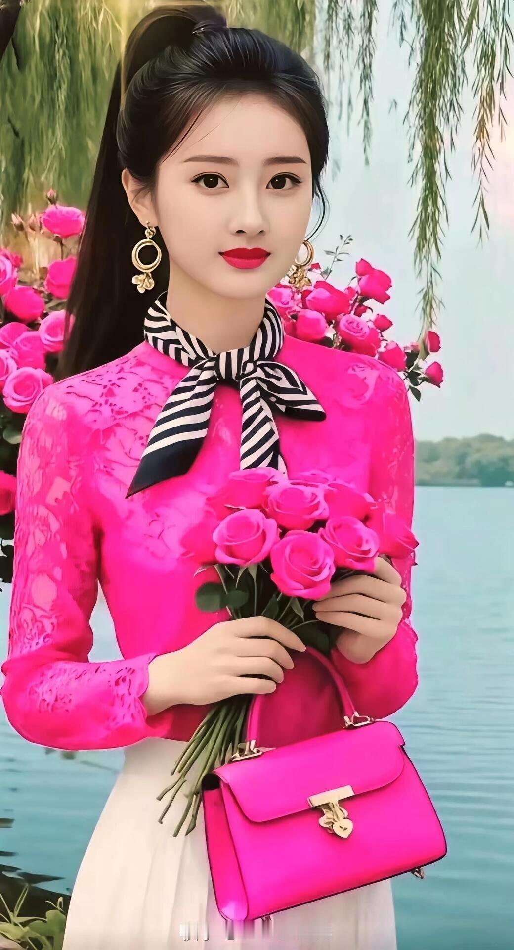 古典美人,湖畔漫步,优雅动人