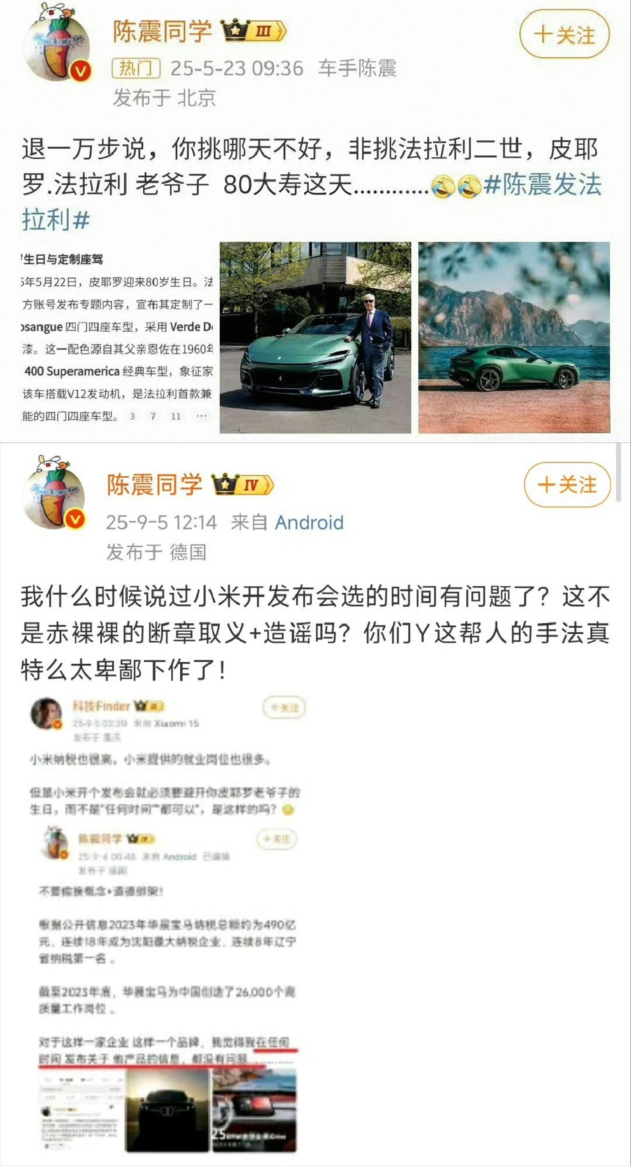 继【退一万步说】后,陈震又有【不管出于什么原因】名句,还是与小米有关,如果小米一直不给陈震投放广告,陈震是不是要一直阴阳下去?很明显的套路,却还要矢口否认,想要操控流量,担心被反噬。陈震曾靠着“十三环飙车”成名,近年来频频陷入争议测评,更因各种阴阳、节奏,而被网友惯以“刘路说车”的吐槽。在煽动舆情、带动流量方面,陈震是“专业”的,甚至远高于汽车测评。